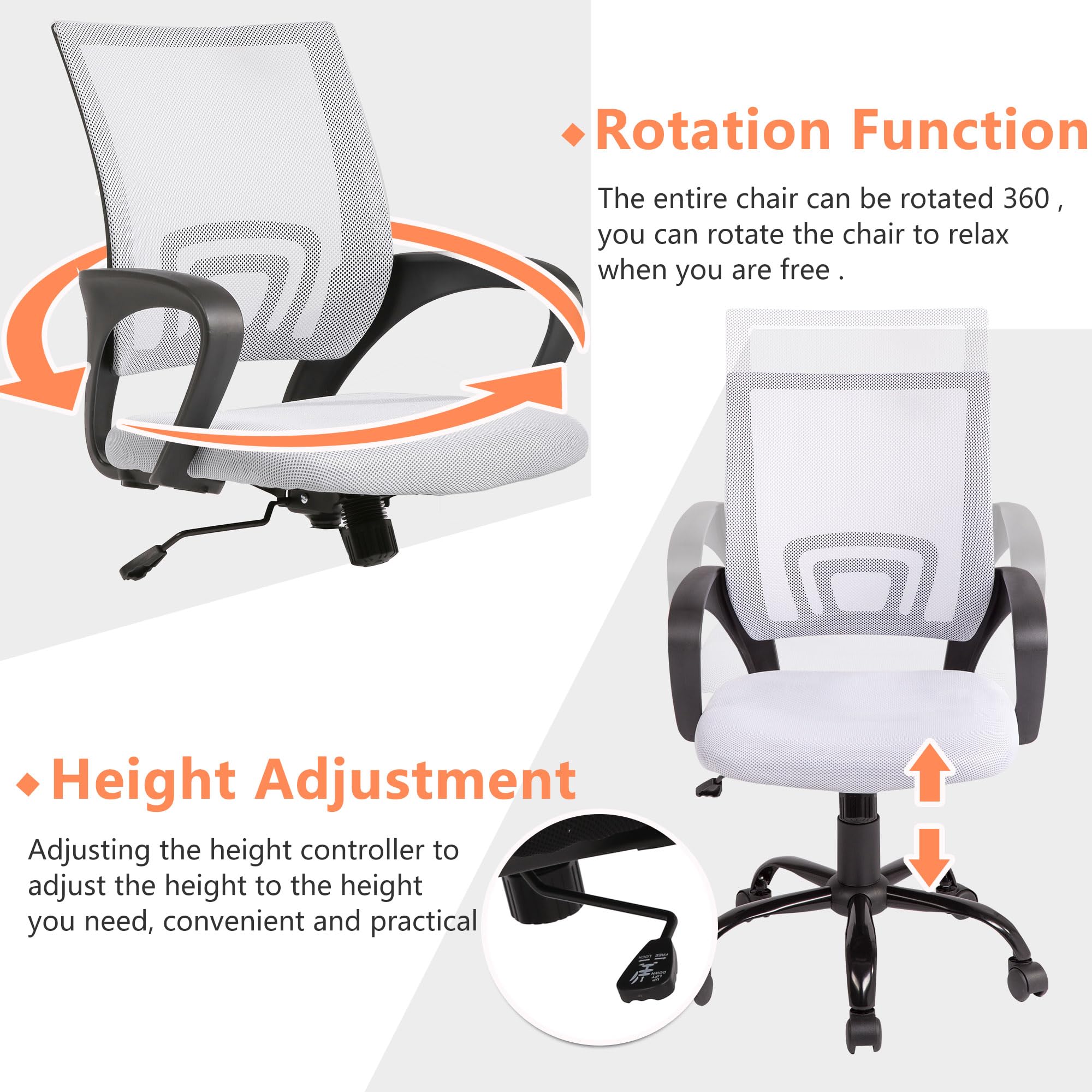❤【RELIABLE COMFORT】 - Our desk chair using high-density sponge cushion, more flexible, office chair with a middle back design, can provide good Lumbar Support. The mesh chair uses a high breathable mesh back to make your back feel comfortable. Mesh chair computer chair office chair desk chair.