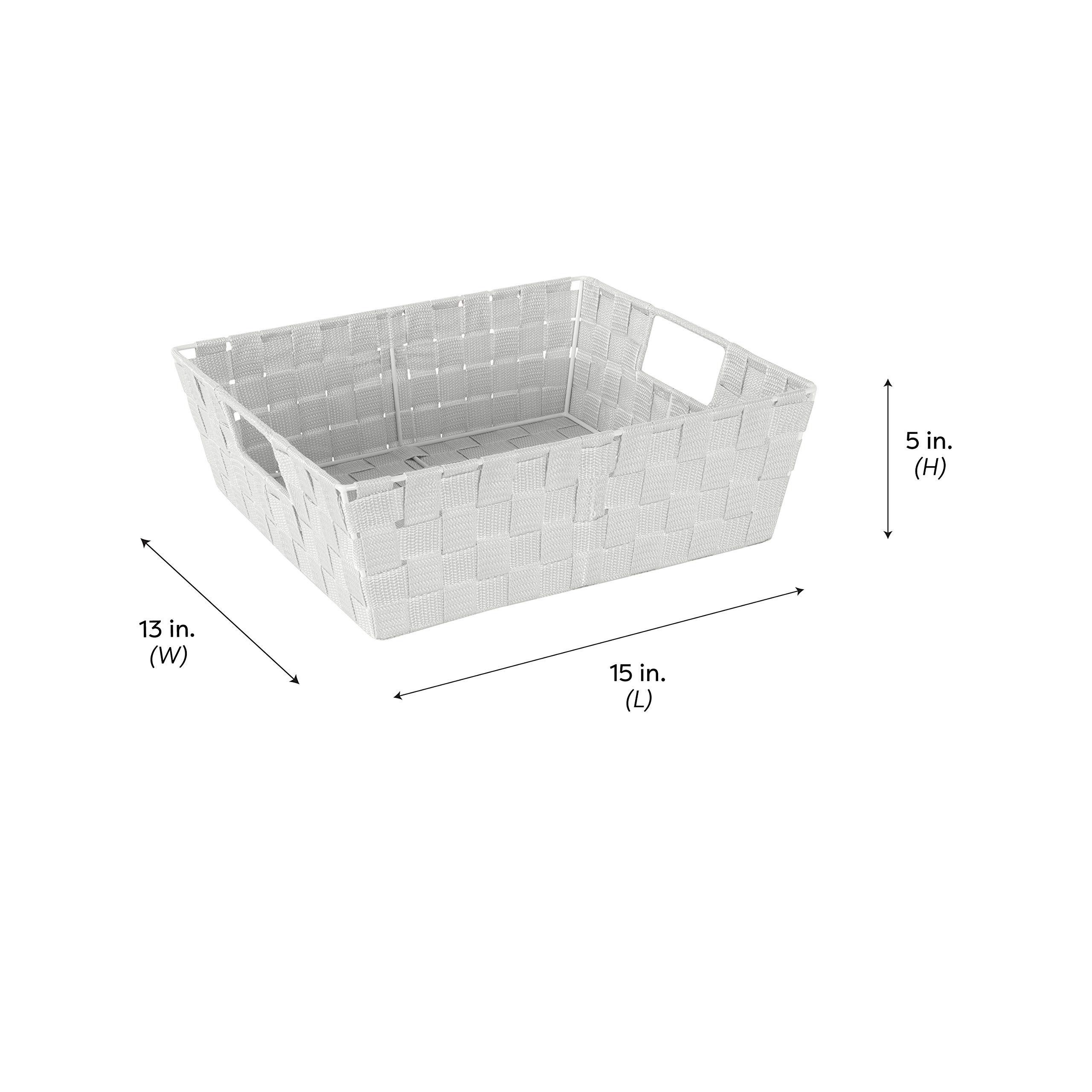 DIMENSIONS: The large shelf tote basket is 15” x 13” x 5”
