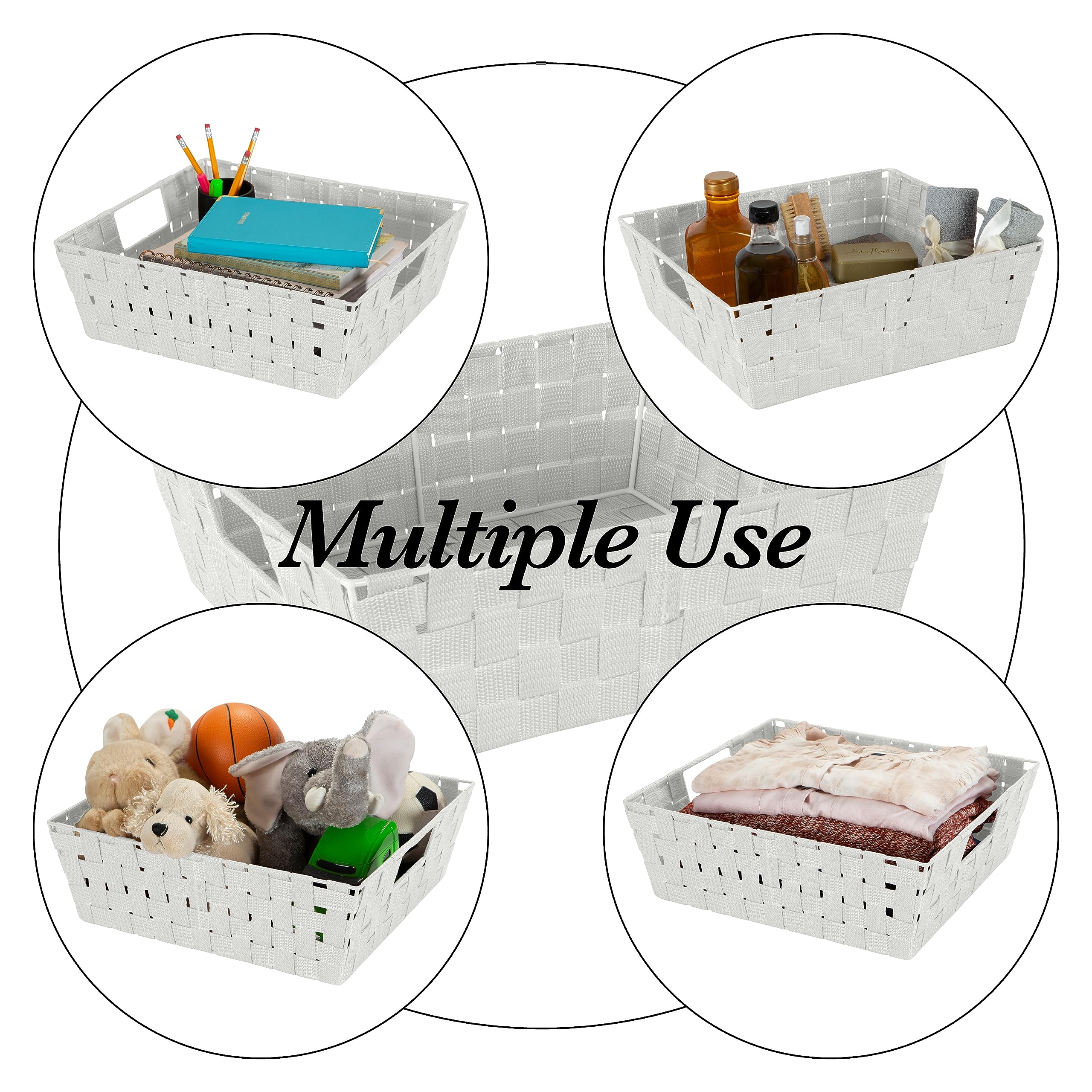 MULTIPUROSE: The small woven basket is great for clothes, accessories, toys, desk supplies, bath and beauty products, and more. The versatile design is perfect to organize any space in your home, bathroom, dorm room, or office.