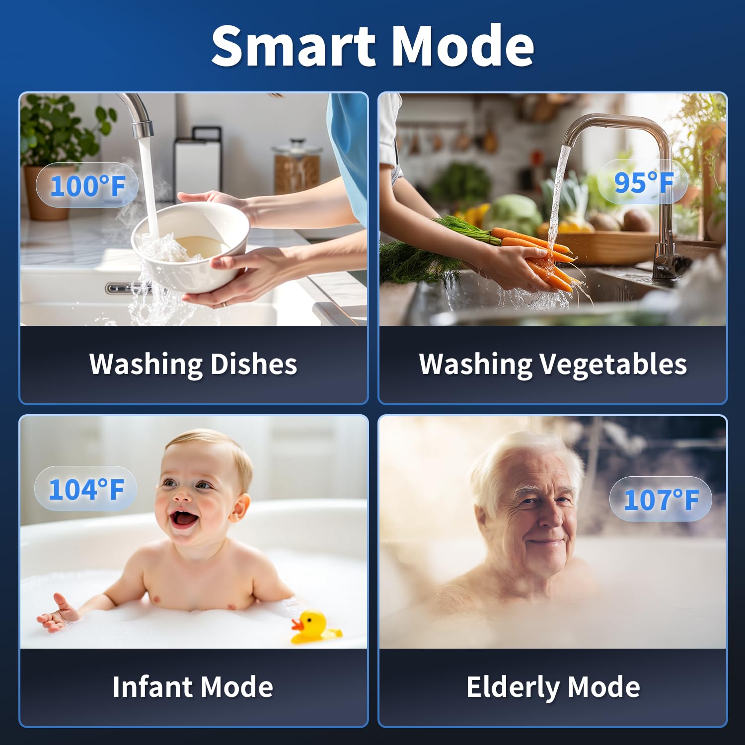 【No Sudden Temp Changes, Stable Experience】Advanced tech maintains steady water temperature; no sudden spikes or drops – ideal for showering or bathing infants comfortably.