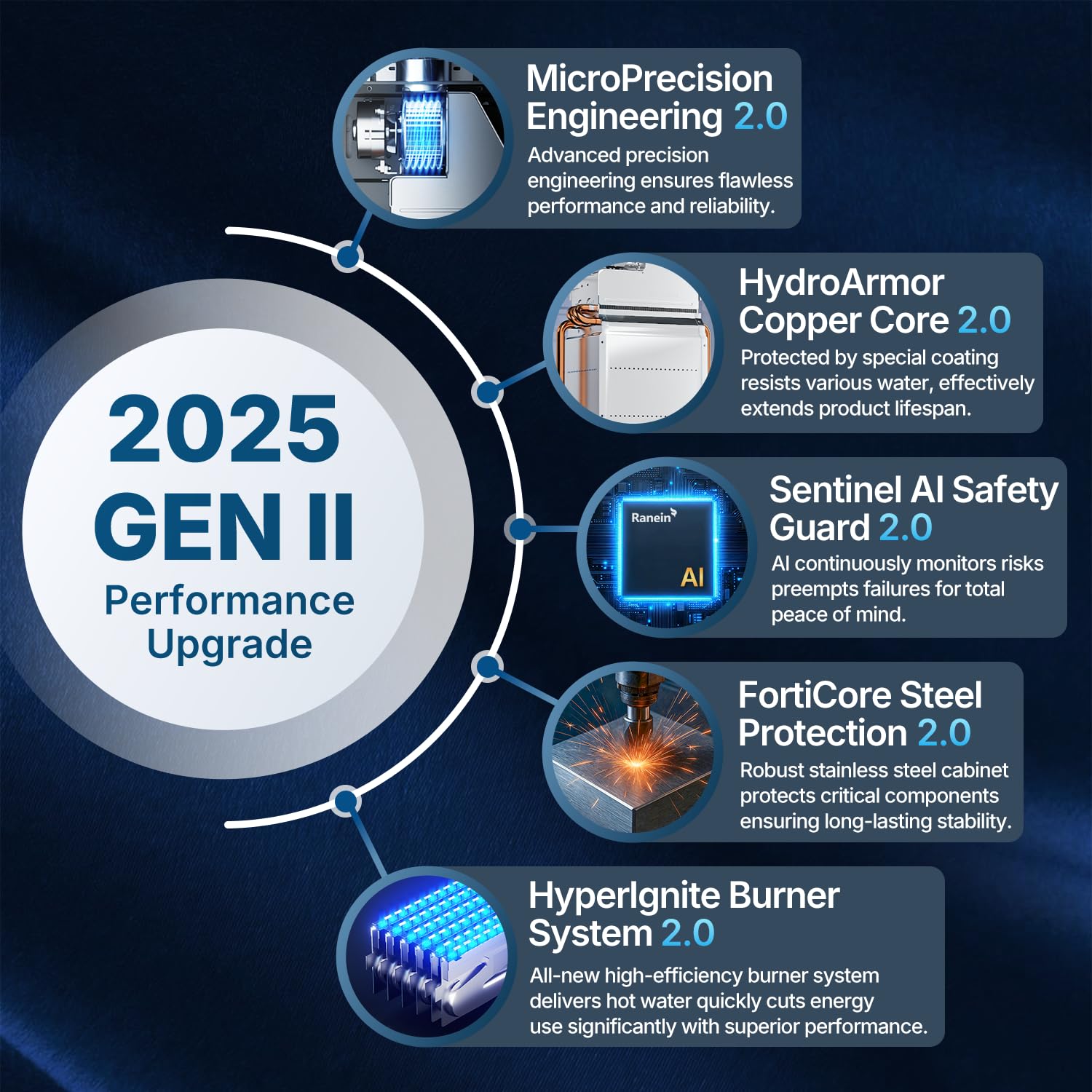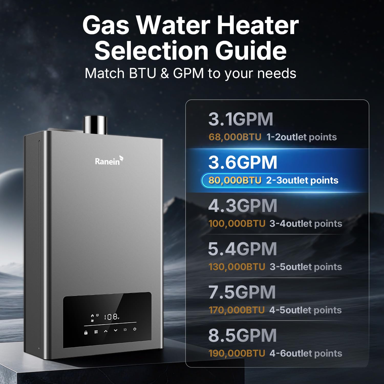【Endless Hot Water for Home Multi-Scenes】Boasts a max 3.6 GPM & 80,000 BTU for 2-3 taps (shower + kitchen sink + bar) – no more hot water shortages for daily household use.