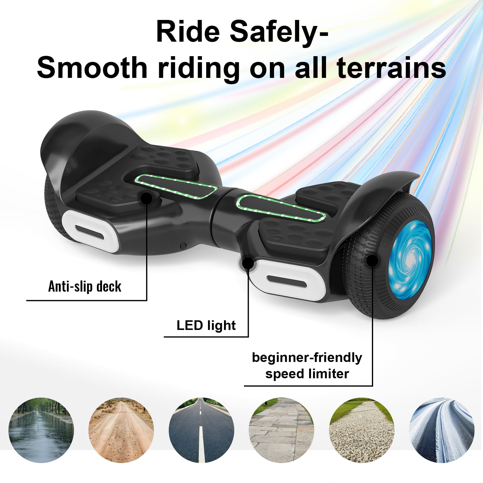 SAFETY FEATURES FOR YOUNG:The Scooter for adults have beginner-friendly speed limiter, LED lights and texture anti-slip deck to prevent accidents.The balance board certified to rigorous UL 2272 safety standards. Intuitive controls designed for first-time riders in all ages