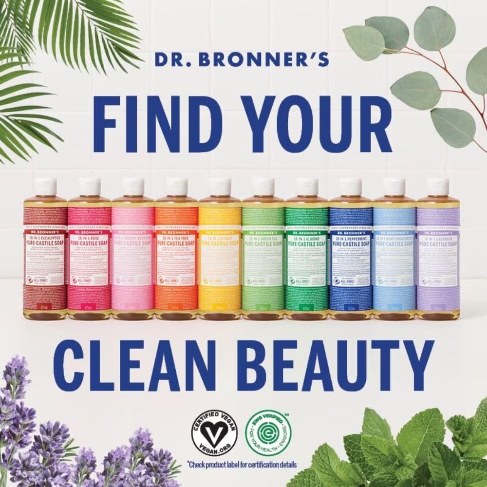 MADE WITH ORGANIC OILS & CERTIFIED FAIR TRADE INGREDIENTS: Dr. Bronner's Pure-Castile Liquid Soaps are made with over 70% certified organic & fair trade ingredients, promoting healthy communities, ethical working conditions & fair prices.