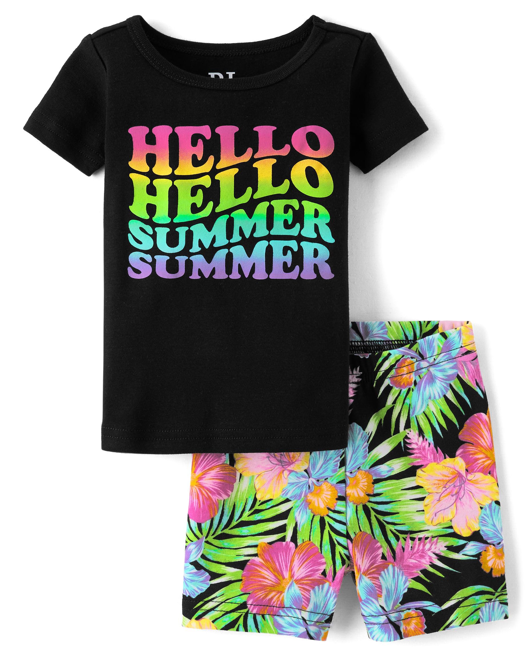 PAJAMA TOP — Features rib-knit crew neck, short sleeves, tagless label and 'Hello Summer' graphic design at front