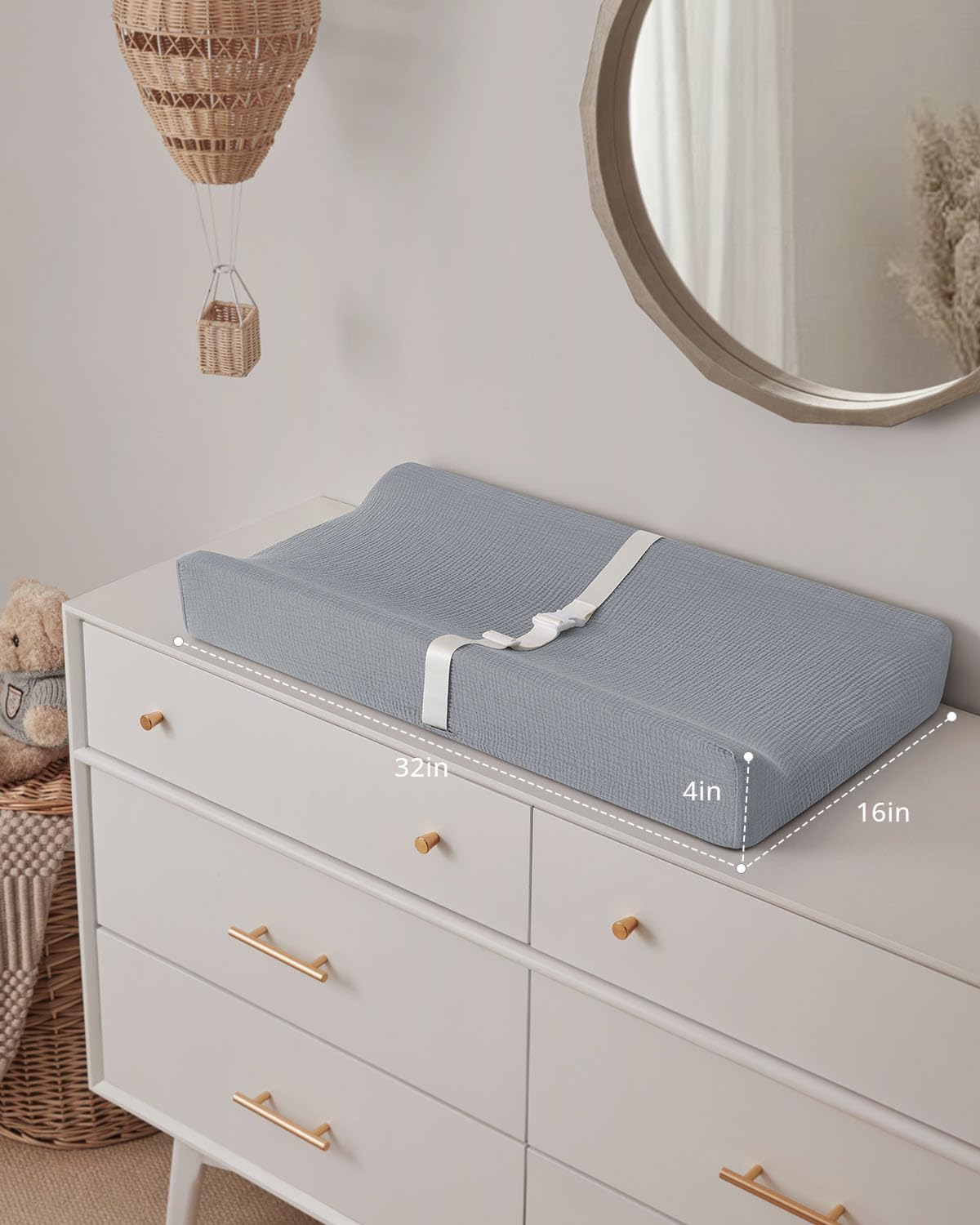 Perfect Size: Measuring 31.25"L x 16"W x 4.25"H, the rectangular changing pad fits standard changing tables and most dressers. With lightweight styling, it's convenient for on-the-go traveling, daycare and more
