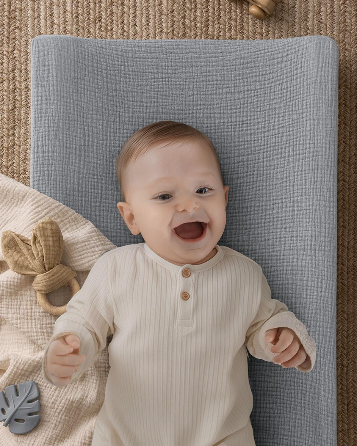 Design Your Dream Nursery: Our muslin baby changing pad in in neutral Gray brings a soothing, timeless charm to your nursery. It's the first choice for modern parents, an unforgettable unisex baby shower gift that new parents will love
