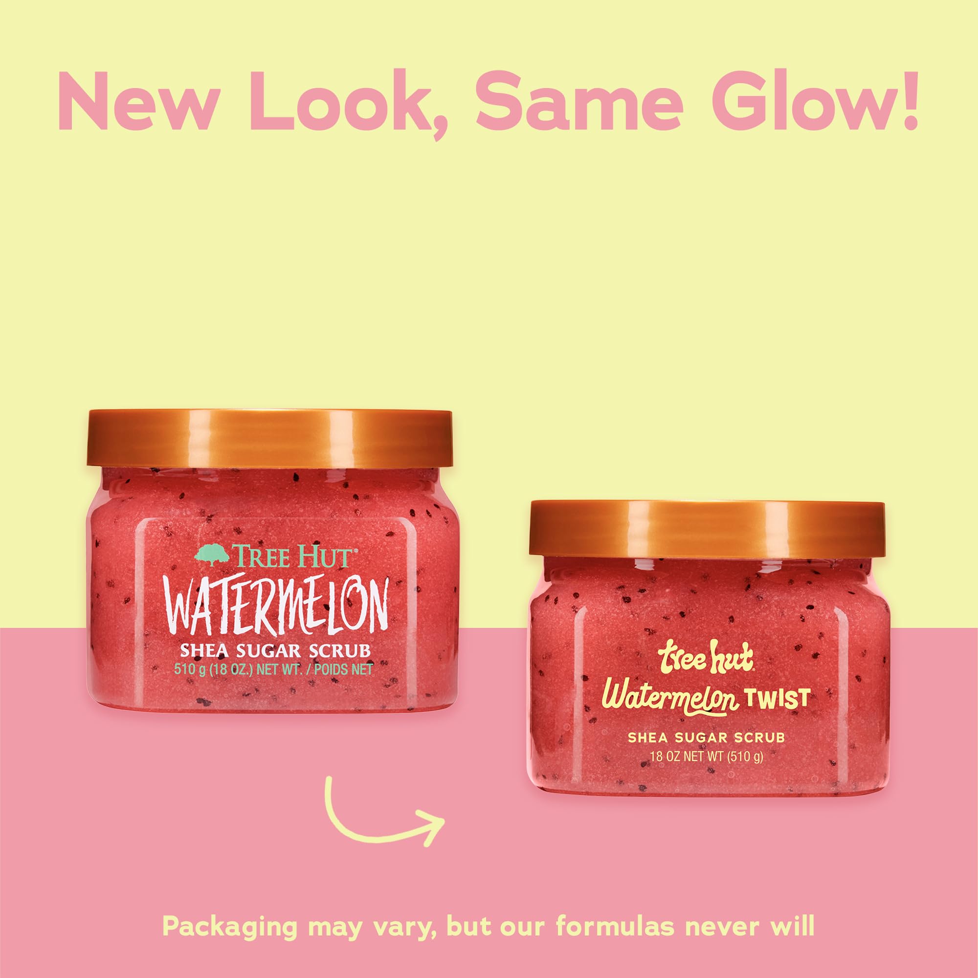 Scrub away the day and reveal soft, glowing skin with our Tree Hut Watermelon Shea Sugar Scrub! Made with real Sugar, Shea Butter, Watermelon, Vegan Collagen, and a blend of six natural oils, this body scrub deeply nourishes and balances skin's hydration to help restore skin's natural glow. The thoughtful ingredients work together to hydrate, renew, and smooth skin while removing dull, dry skin. Plus, our Watermelon scent smells like a burst of hydration with key notes of watermelon, lemon zest and raspberry cotton candy. Tree Hut Shea Sugar Body Scrubs are formaldehyde-free, gluten-free, paraben-free, sulfate-free, and vegan. Apply a generous amount to damp or dry skin, buff in circular motions, and rinse well for skin that feels refreshed, smooth, and radiant. Tree Hut believes that everyone deserves to take time in their day to feel good, even if it's just in the shower or bath. From our Shea Sugar Scrubs and Body Lotions to our Fragrance Mists and Body Washes, we craft delicious and delightful beauty products with exceptional quality. *Naterra calculation based in part on data reported by NIQ through its Syndicated Database service for the Exfoliator/Scrubs category for the latest 52 wks ending 11.02.2024. Copyright © 2024, Nielsen Consumer LLC.