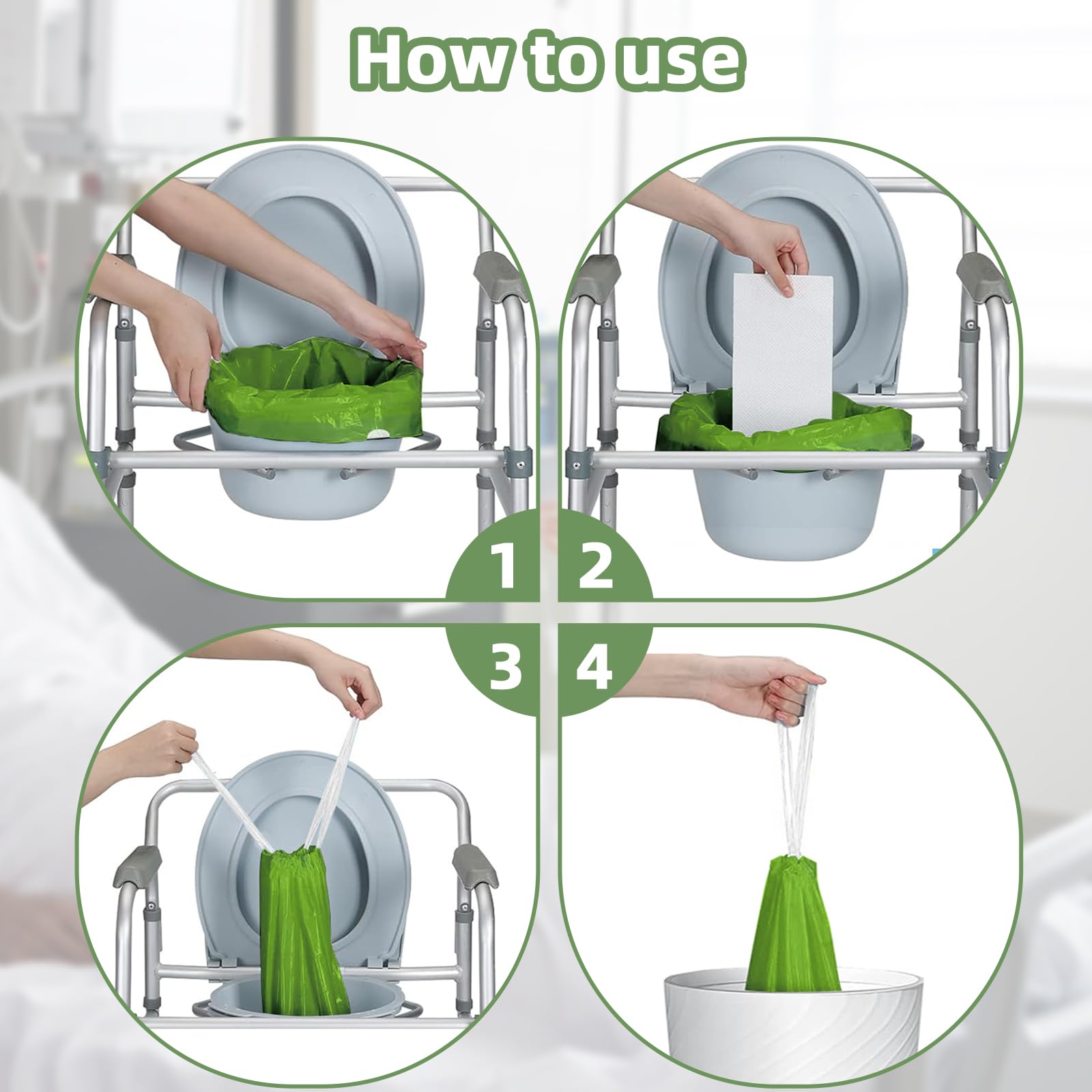 Durable, Leak-Proof, Medical-Grade Material:Made from premium thickened medical-grade LDPE, our toilet liners are waterproof, tear-resistant, and leak-proof. The absorbent pad quickly transforms liquids into gel within seconds, ensuring no spills or splashes during use