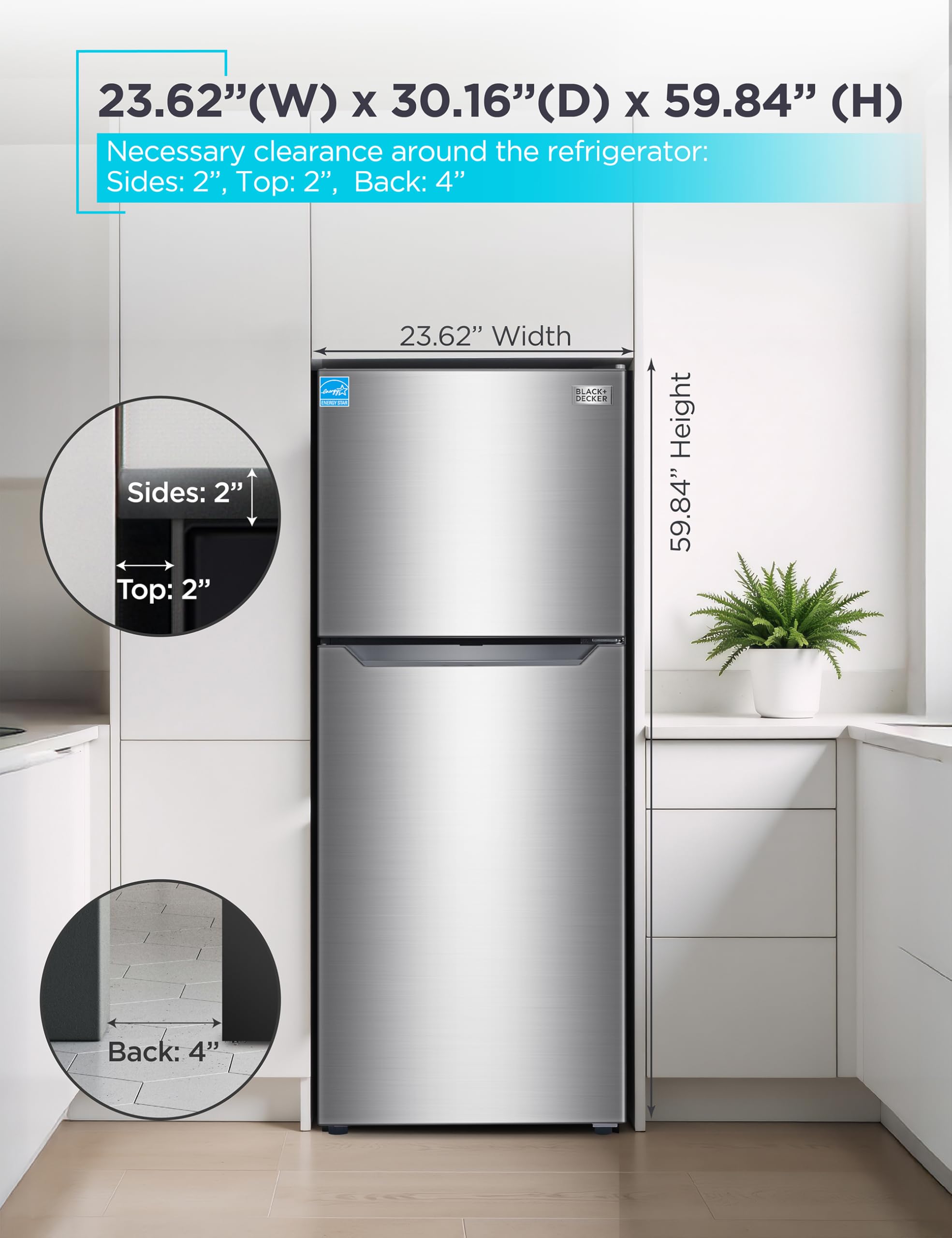 Spacious 12.1 Cu. Ft. Capacity: This full size refrigerator with freezer provides ample space for your fresh and frozen foods. Top freezer refrigerator is ideal for kitchens in homes and apartments