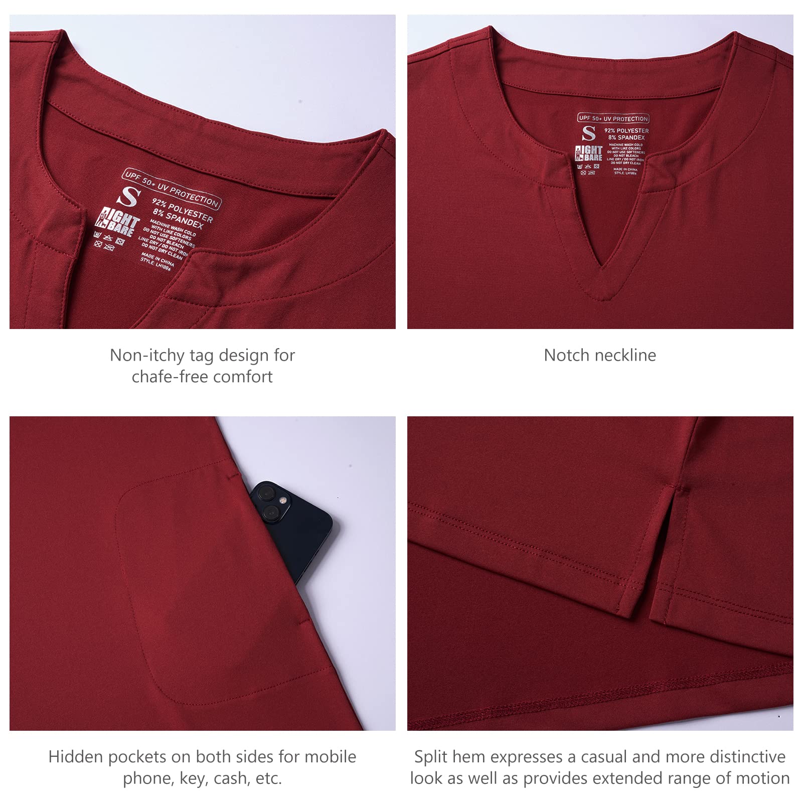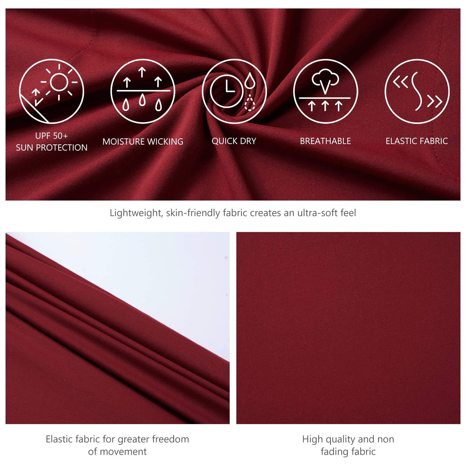 UPF 50+ performance fabric protects your skin from harmful UVA and UVB rays; Moisture wicking and quick drying properties keep you cool and dry during outdoor activities