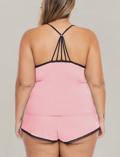 ❀ Material: Plus size cami shorts set is made of 95%Polyester+5%Spandex.Soft and stretchy fabric makes it breathable and comfortable.