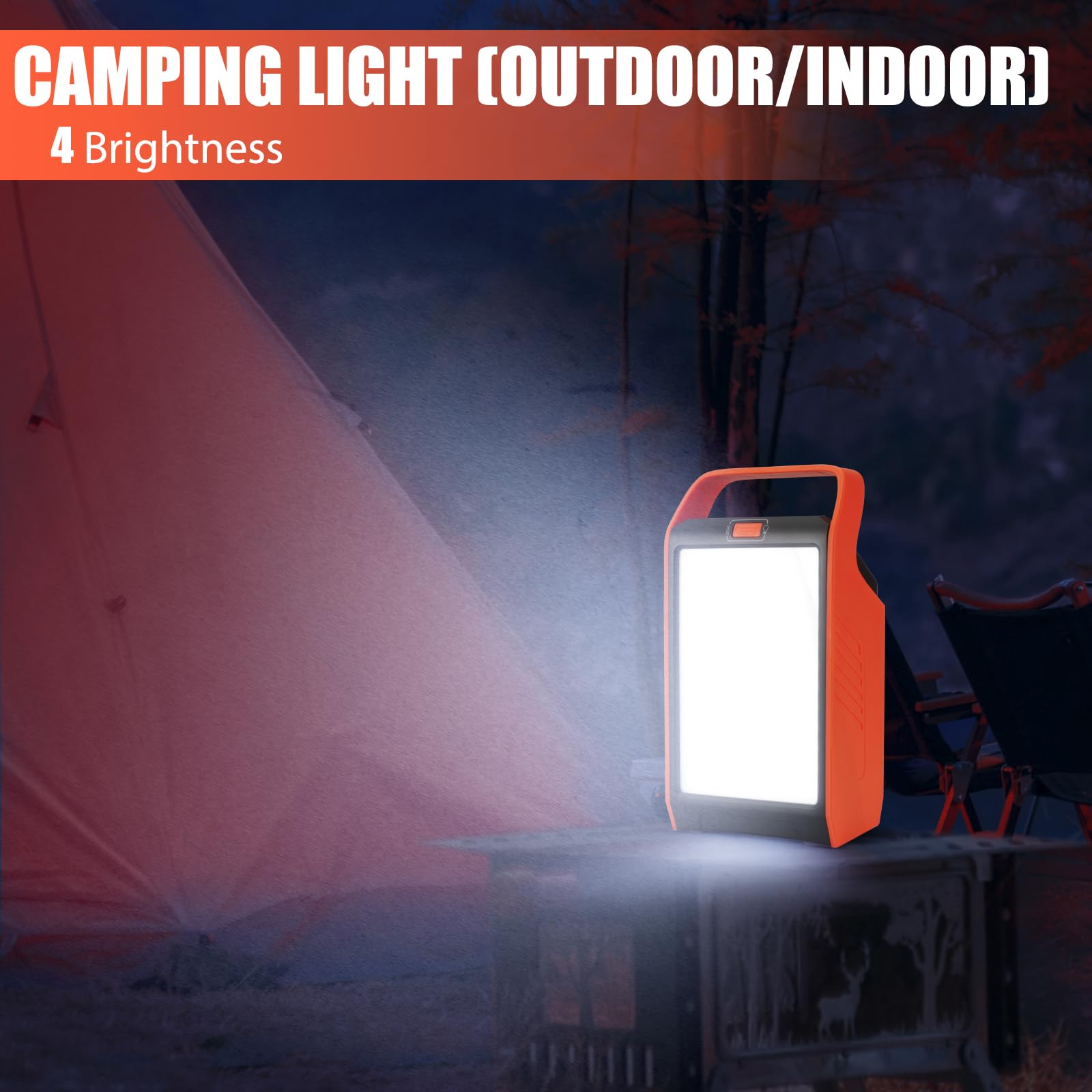 Flashlights For Camping: LED light of portable power supply provides 4 different levels of brightness and SOS mode. Camping lights can last up to 94 hours, 13 hours and 30 hours in power saving, super bright and SOS modes respectively. Perfectly suit outdoor adventures, hiking, fishing, power outage, emergency situations, truck bed tent, reading, etc.