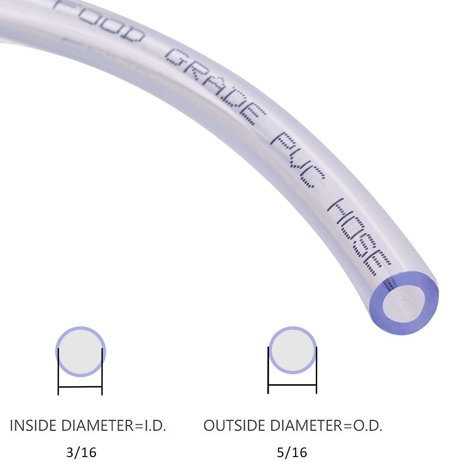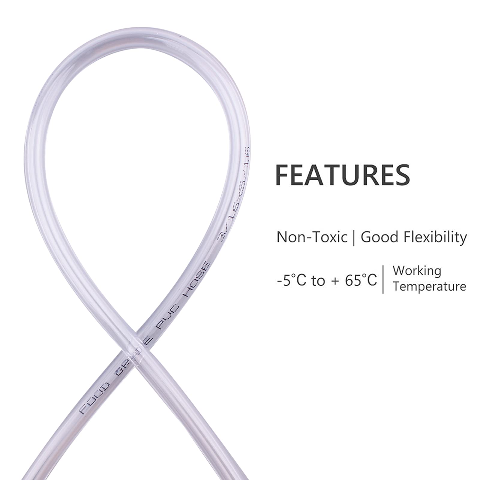Size - Plastic PVC tubing, 3/16 inch ID X 5/16 inch OD Length:10 Feet