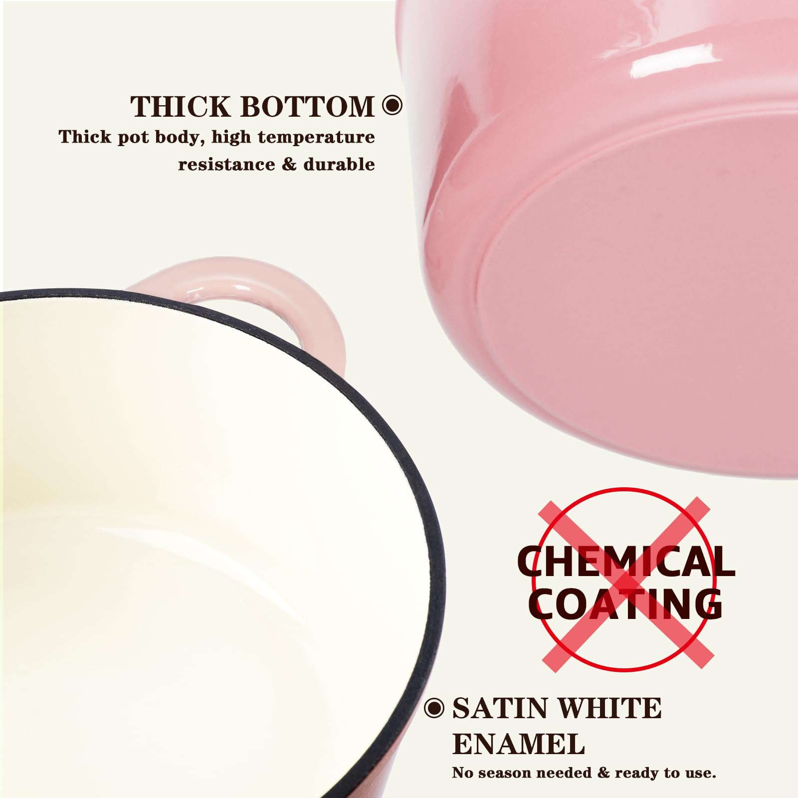 Outstanding Heat Mastery: Crafted with precision, Overmont premium enamel cast iron ensures exceptional heat distribution and retention. Its solid integral molding guarantees unmatched durability, keeping your cooking experiences seamless. 𝐍𝐎𝐓𝐄: 𝐅𝐨𝐫 𝐛𝐞𝐬𝐭 𝐫𝐞𝐬𝐮𝐥𝐭𝐬 𝐨𝐧 𝐭𝐡𝐞 𝐬𝐭𝐨𝐯𝐞𝐭𝐨𝐩, 𝐮𝐬𝐞 𝐦𝐞𝐝𝐢𝐮𝐦 𝐭𝐨 𝐥𝐨𝐰 𝐡𝐞𝐚𝐭 𝐭𝐨 𝐩𝐫𝐞𝐯𝐞𝐧𝐭 𝐟𝐨𝐨𝐝 𝐟𝐫𝐨𝐦 𝐬𝐭𝐢𝐜𝐤𝐢𝐧𝐠 𝐝𝐮𝐫𝐢𝐧𝐠 𝐮𝐬𝐞.
