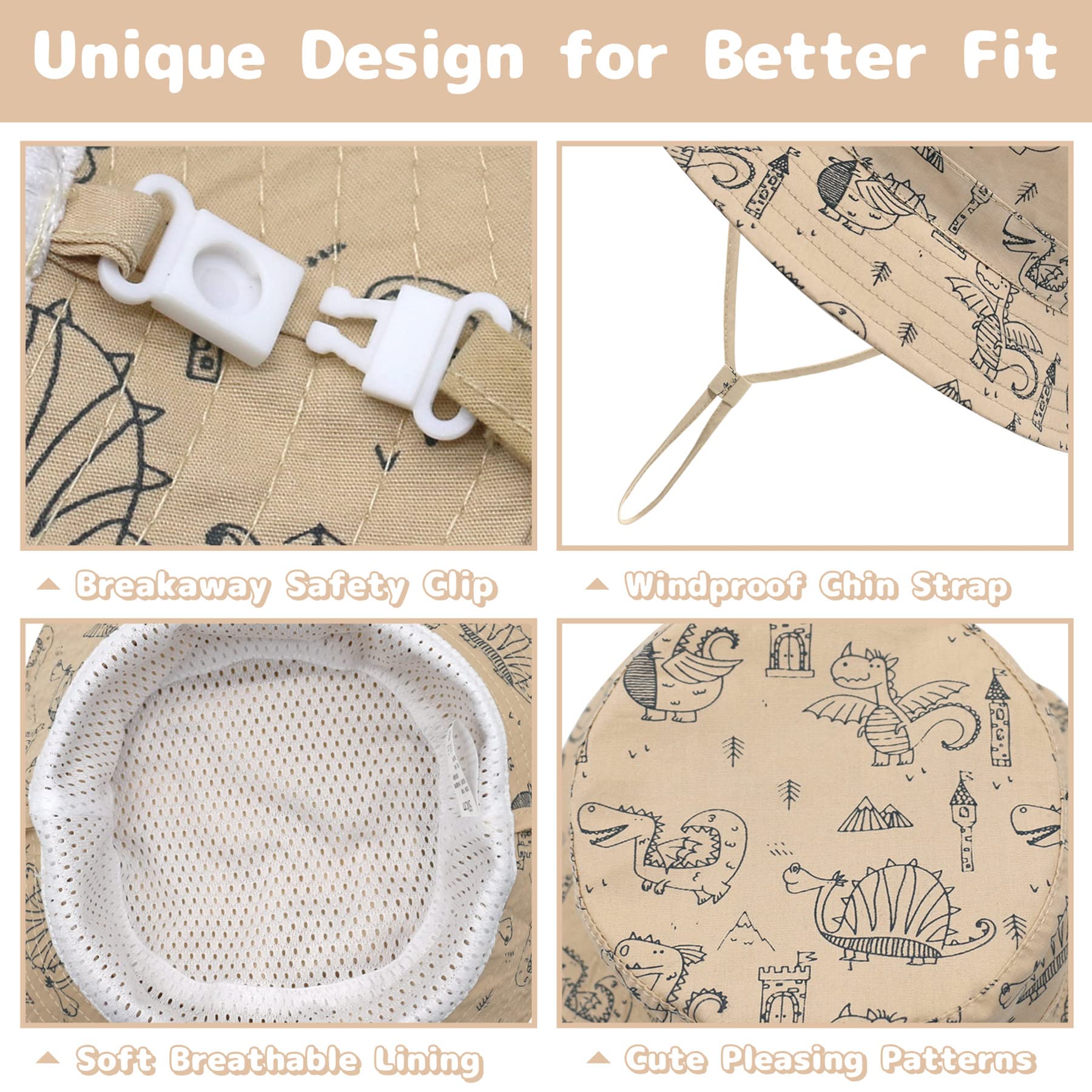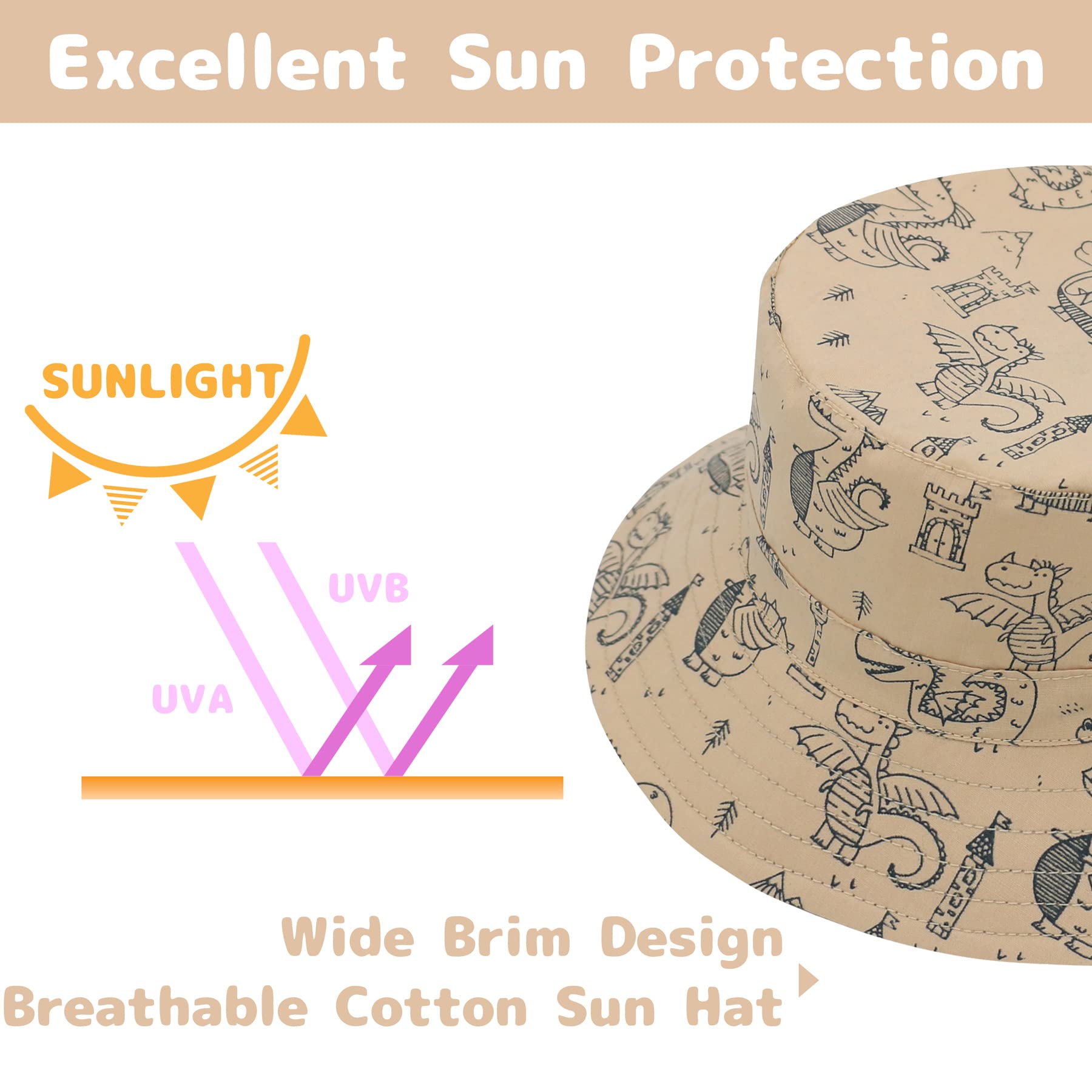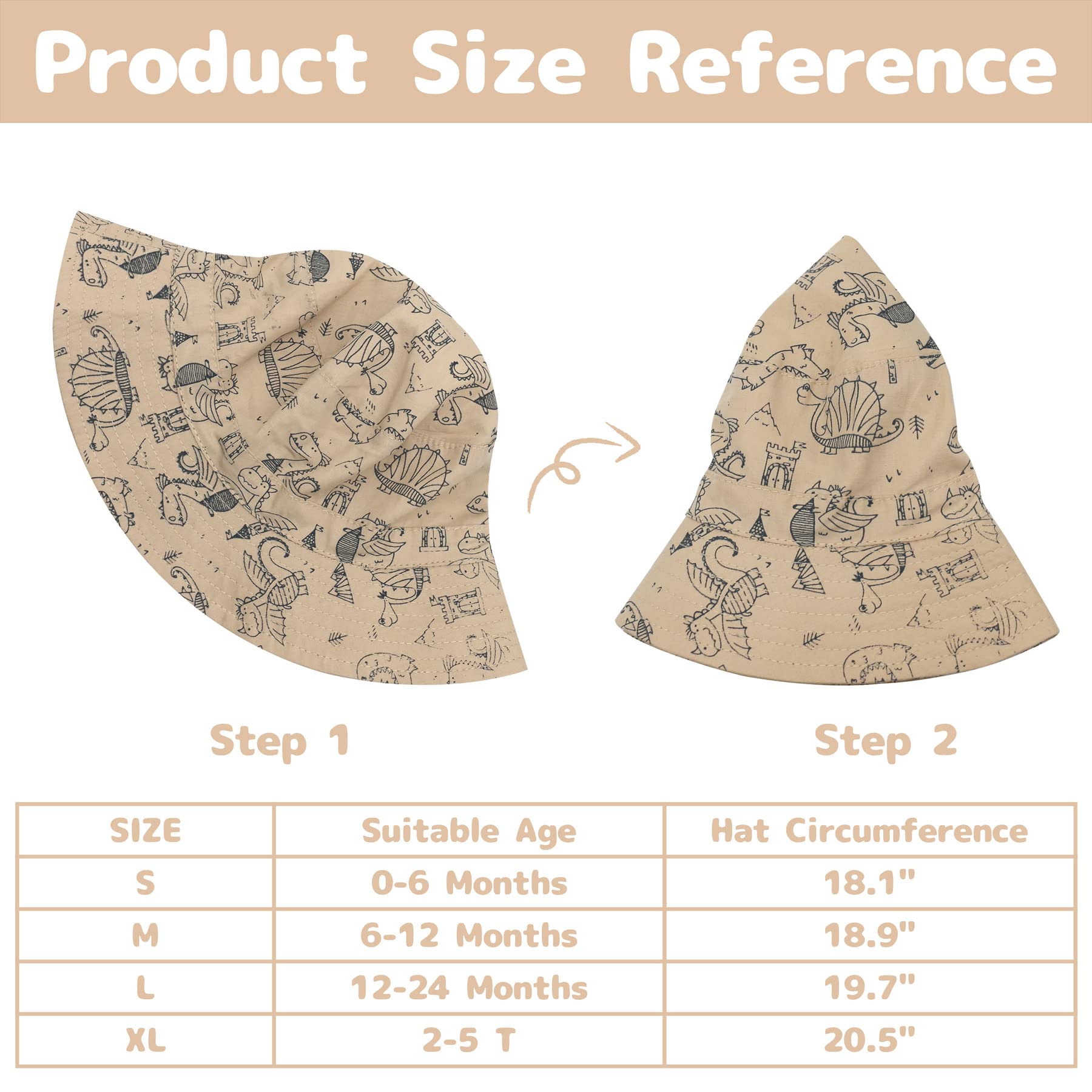 ADORABLE & EASY MATCHING: These baby sun hats are designed with soft color and lovely dinosaur patterns, which are easy to pair with any baby outfits. Your little baby can wear this baby bucket hat on sunny days and will always be in style. The perfect accessory for baby in summer.