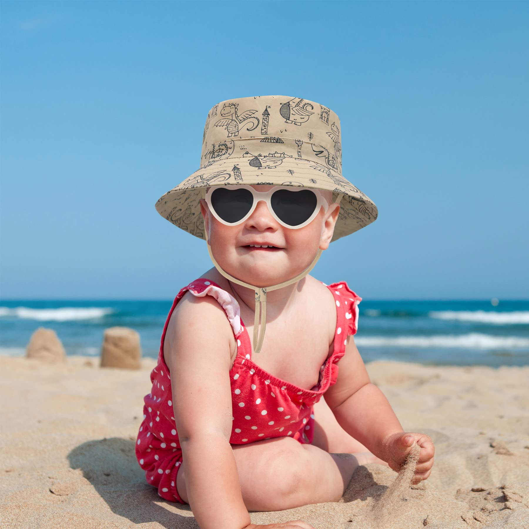 ADJUSTABLE & FITS WELL: Our toddler sun hat is designed with adjustable chin straps without plastic buckles, which can be more eco-friendly and skin-friendly, and offer a customized fit. And the infant sun hat has a breakaway safety clip which can be simply clipped back in.