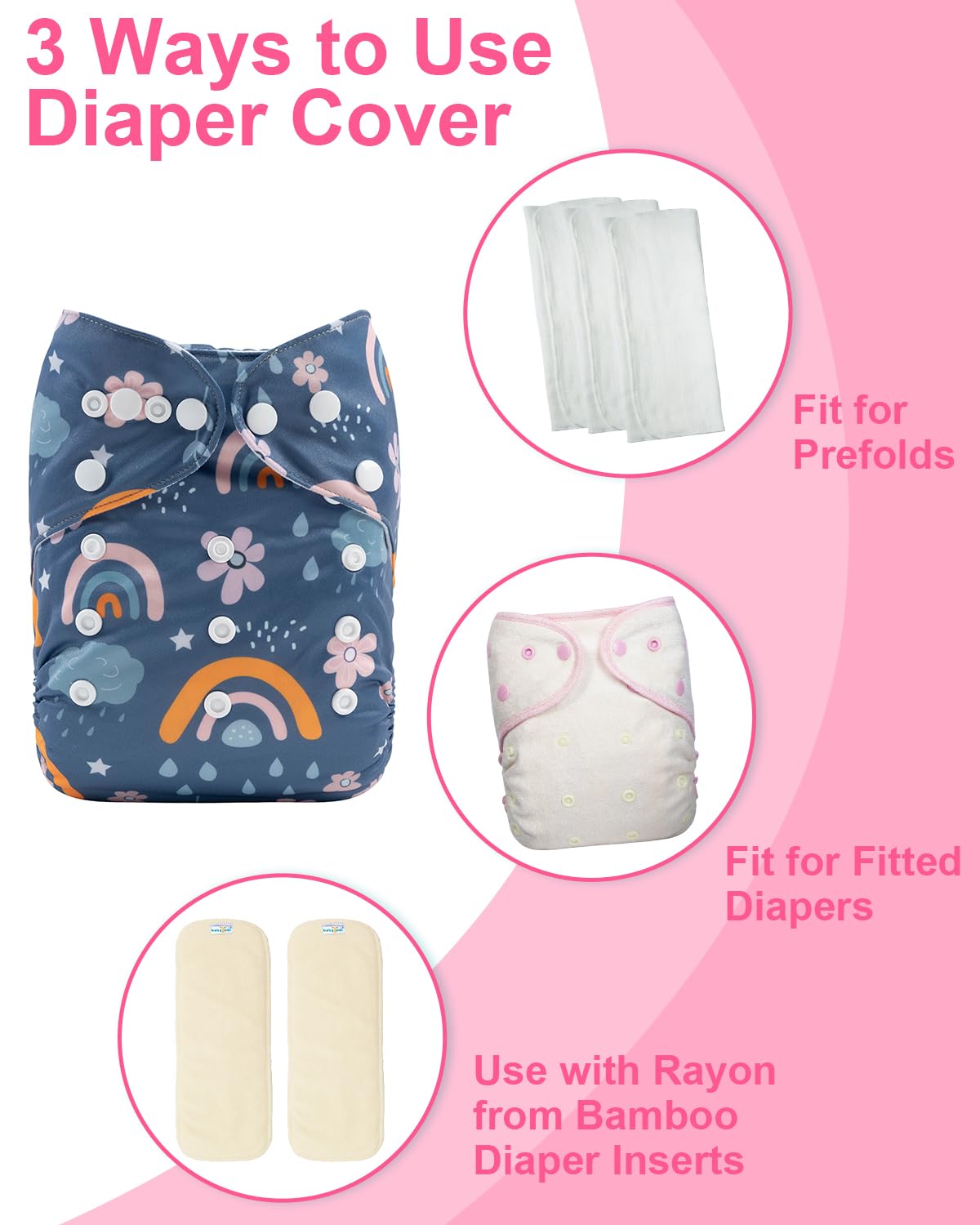 Fit for Prefolds or Fitted Diapers: Our covers will fit perfectly with prefolds or fitted diapers, aslo you can use it with inserts.