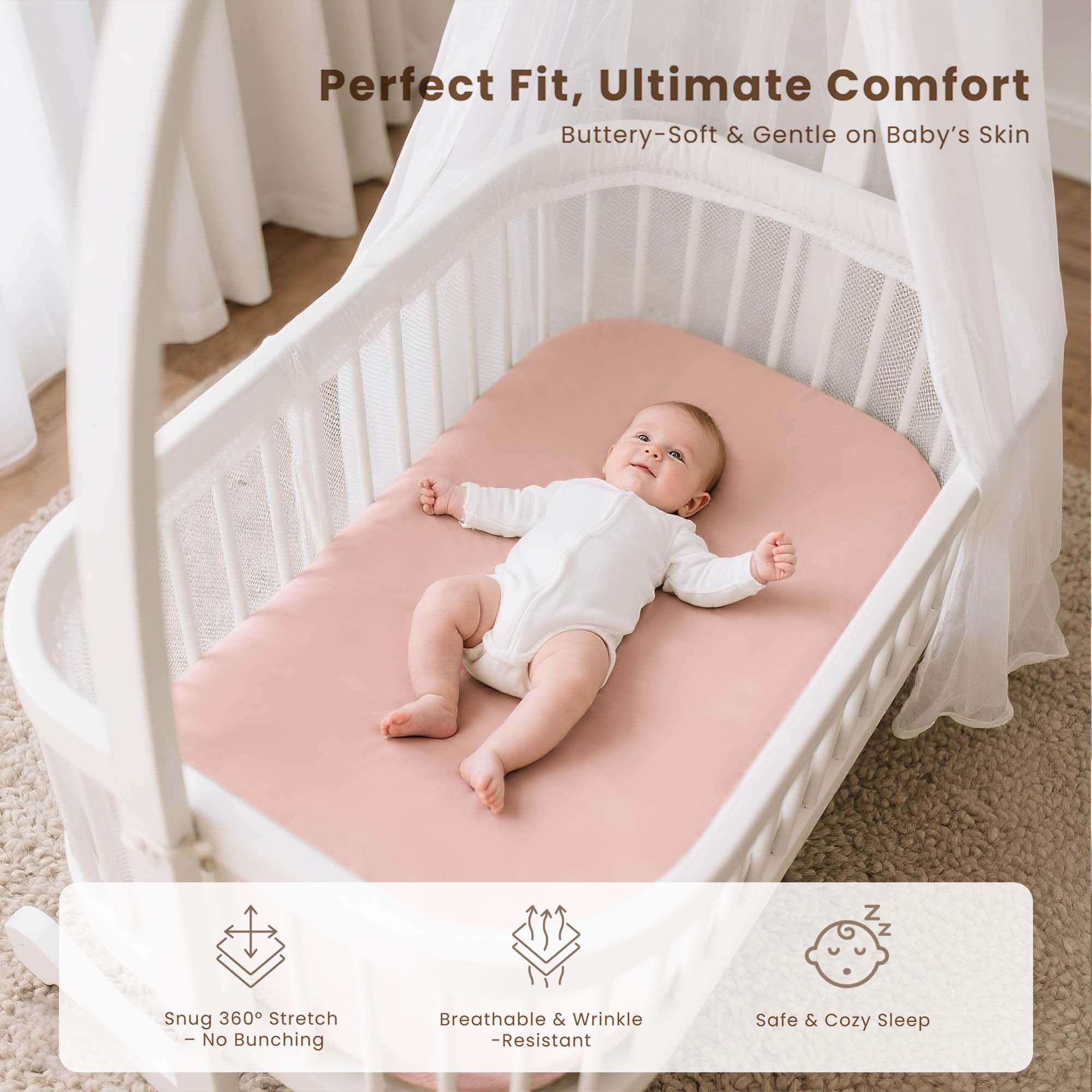 Easy To Care: Machine washable and durable, these bassinet fitted sheets maintain their softness and shape after every wash. Built to last, they ensure a fresh, clean sleep environment for your baby with long-lasting durability