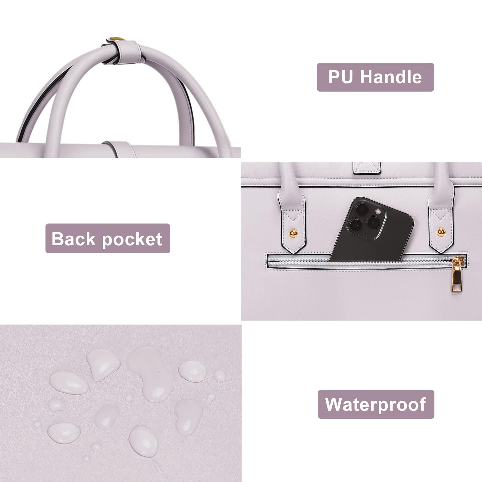 Roomy enough with 3 compartments for all your daily stuff. The computer compartment in the middle provides a thick padded foam section with a hook & loop strap closure for your laptop or tablet. Professional design to protect your laptop against accidental impacts and scratches. The other two side compartments can store your jewelry, mobile phone, keys, mouse, passports, credit cards, cash, makeups and so on.