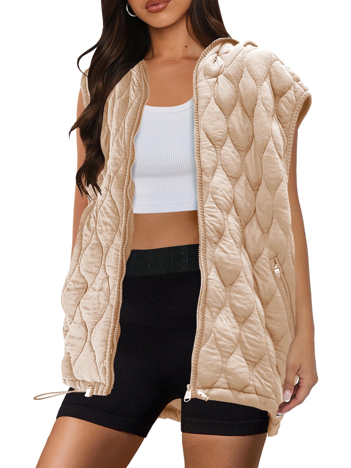 Features: With a hooded design and 2 side pockets, our womens oversized vest features a classic zip-front silhouette with exposed seaming for added dimension, the oversized vests for women's designed to fit oversized for an effortless, relaxed look