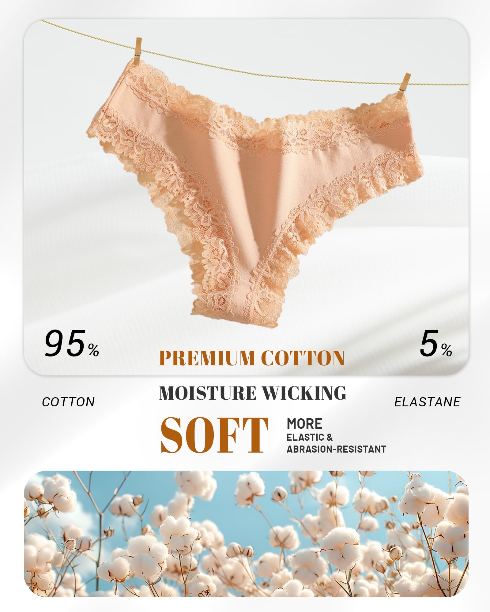 Cotton Underwear for Women: Made with 95% cotton + 5% elastane, this blend is softer and stretchier than 100% cotton. The plain weave cotton fabric is lightweight, durable, and gentle on sensitive skin.