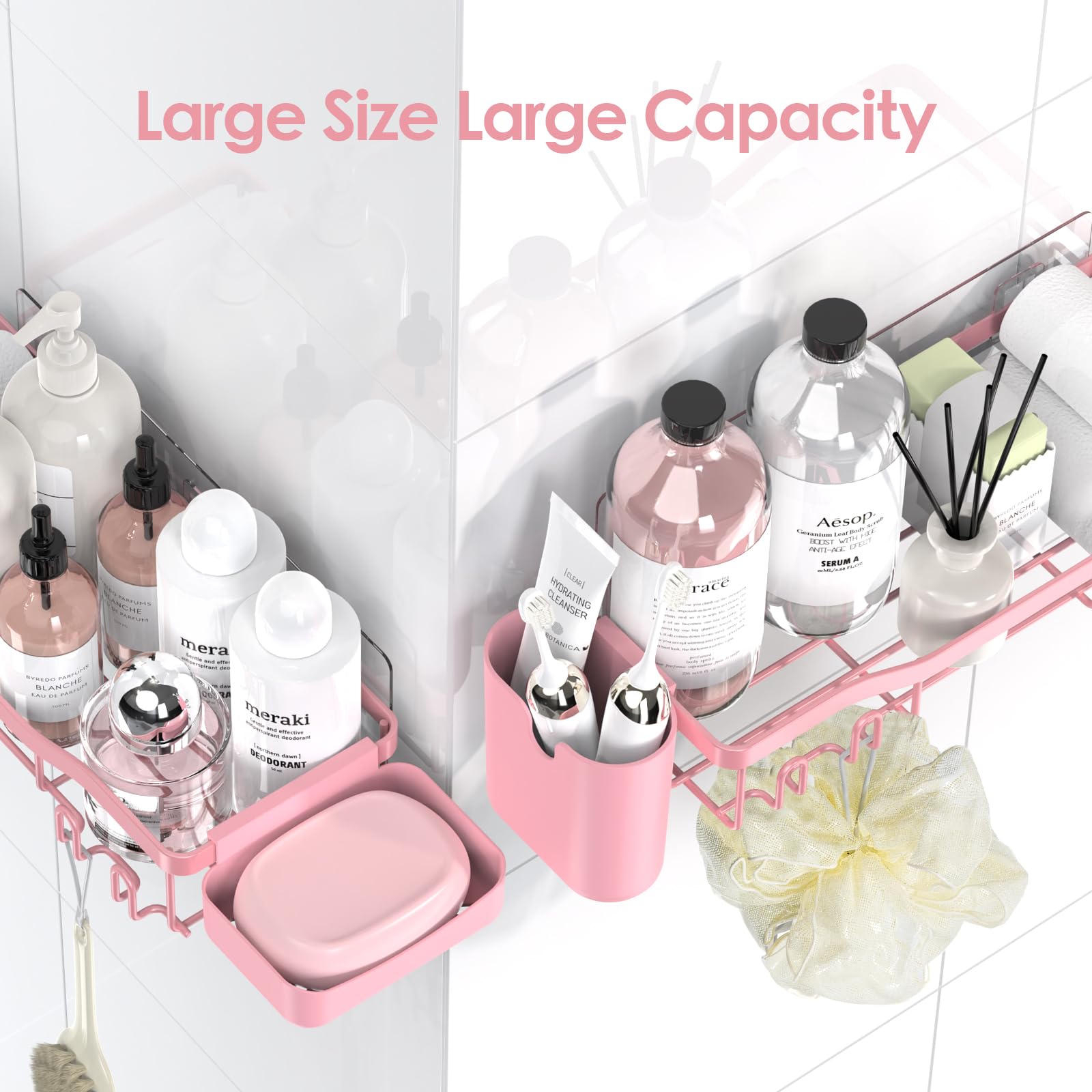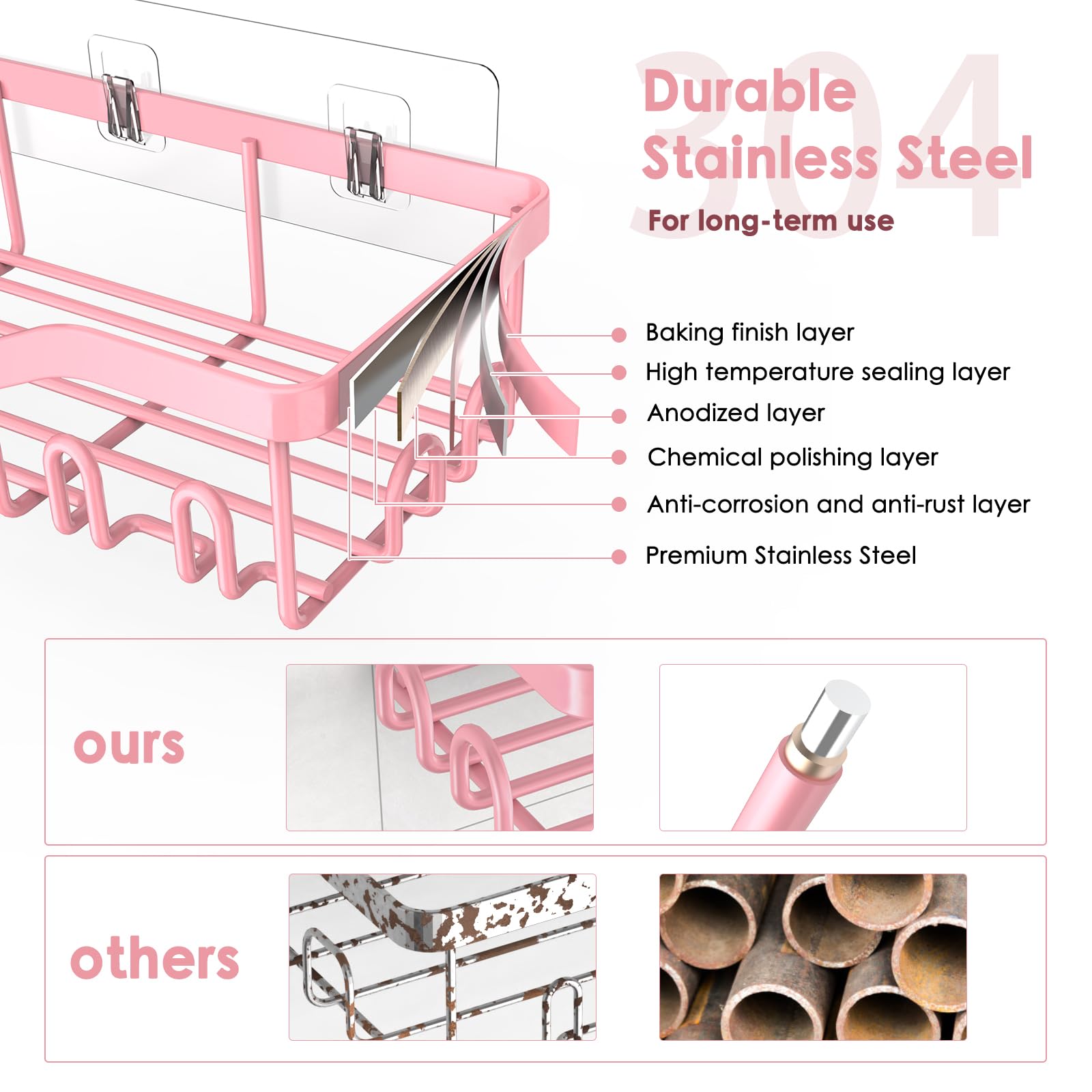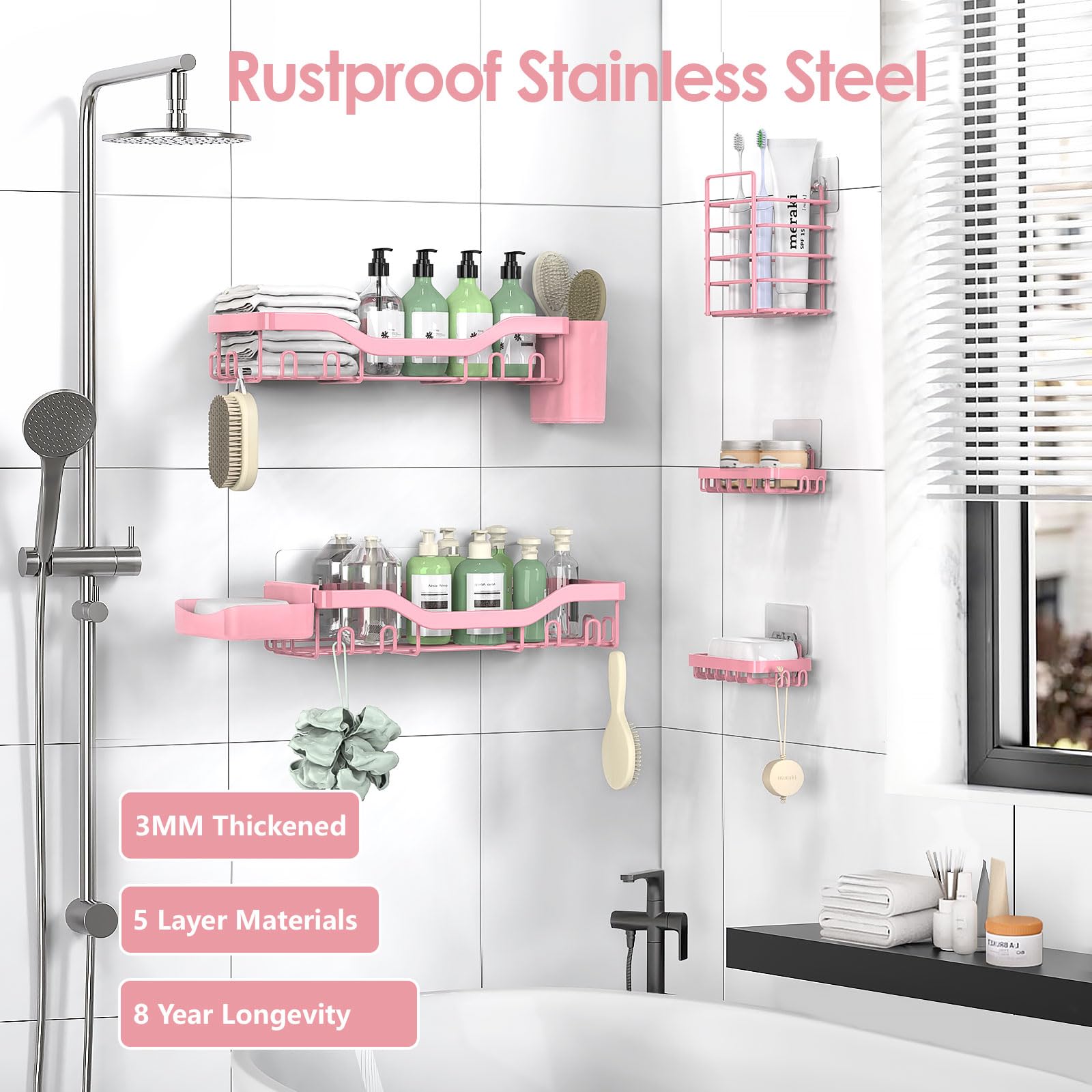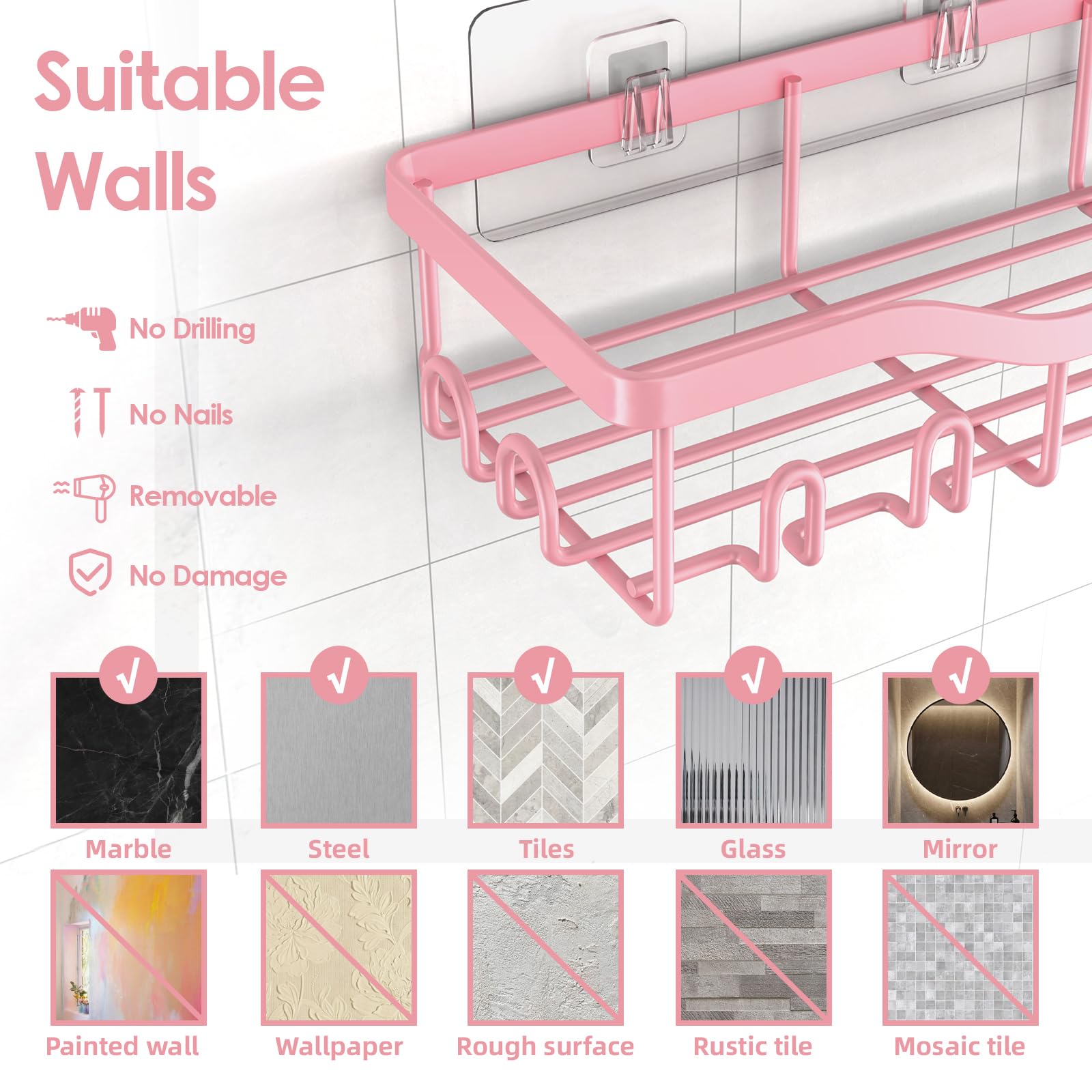 Newest Upgraded Stronger Adhesive Bathroom Caddy: The transparent traceless adhesives give ultra-strong reliability with up to 40 lbs of bearing weight, which is tested by professional institutions. The bathroom shower organizer has twice the load-bearing capacity of the old version. NESOMI bathroom shelf can be installed without drilling. The storage shelves will never worry about falling issues after proper installation, and make your family space use to the extreme