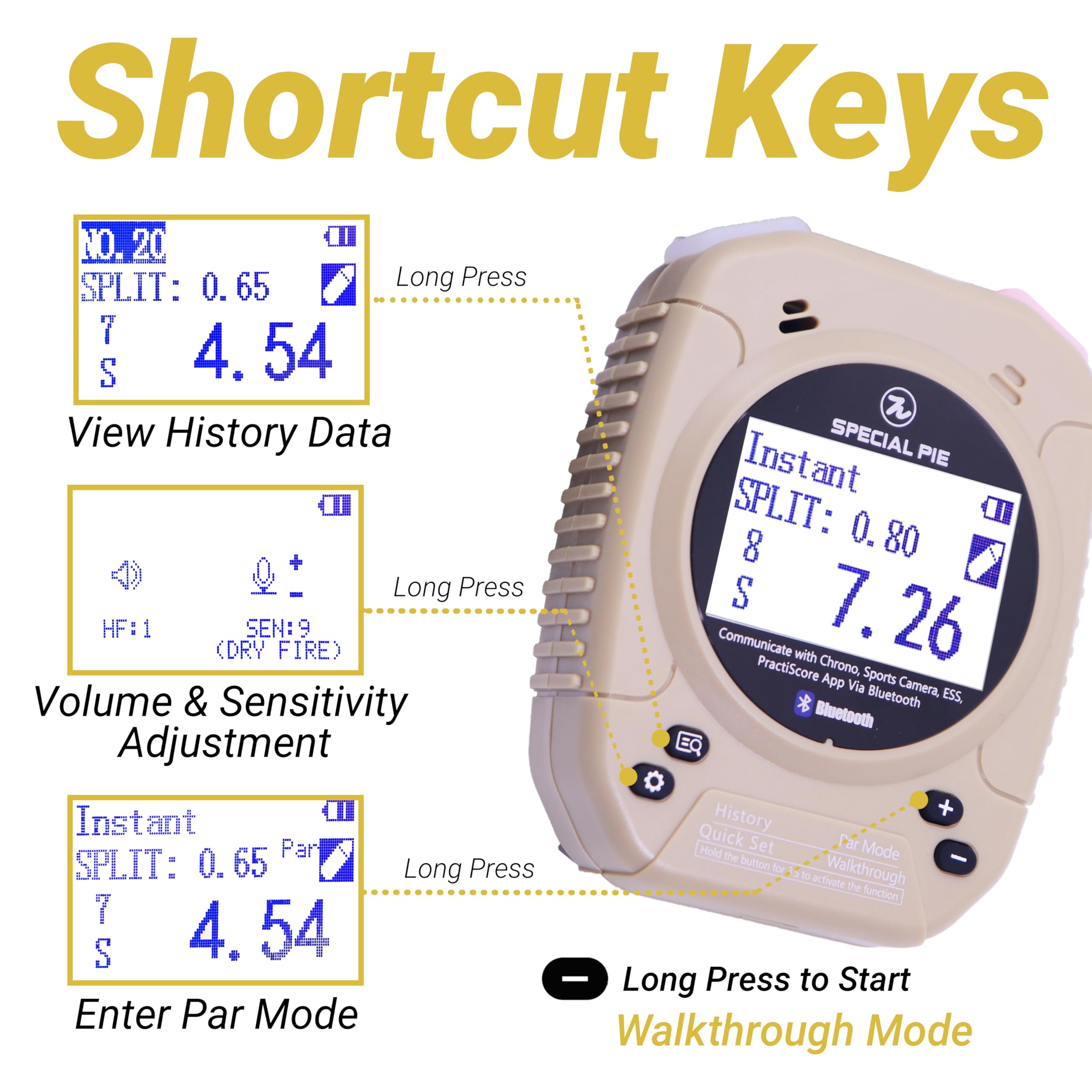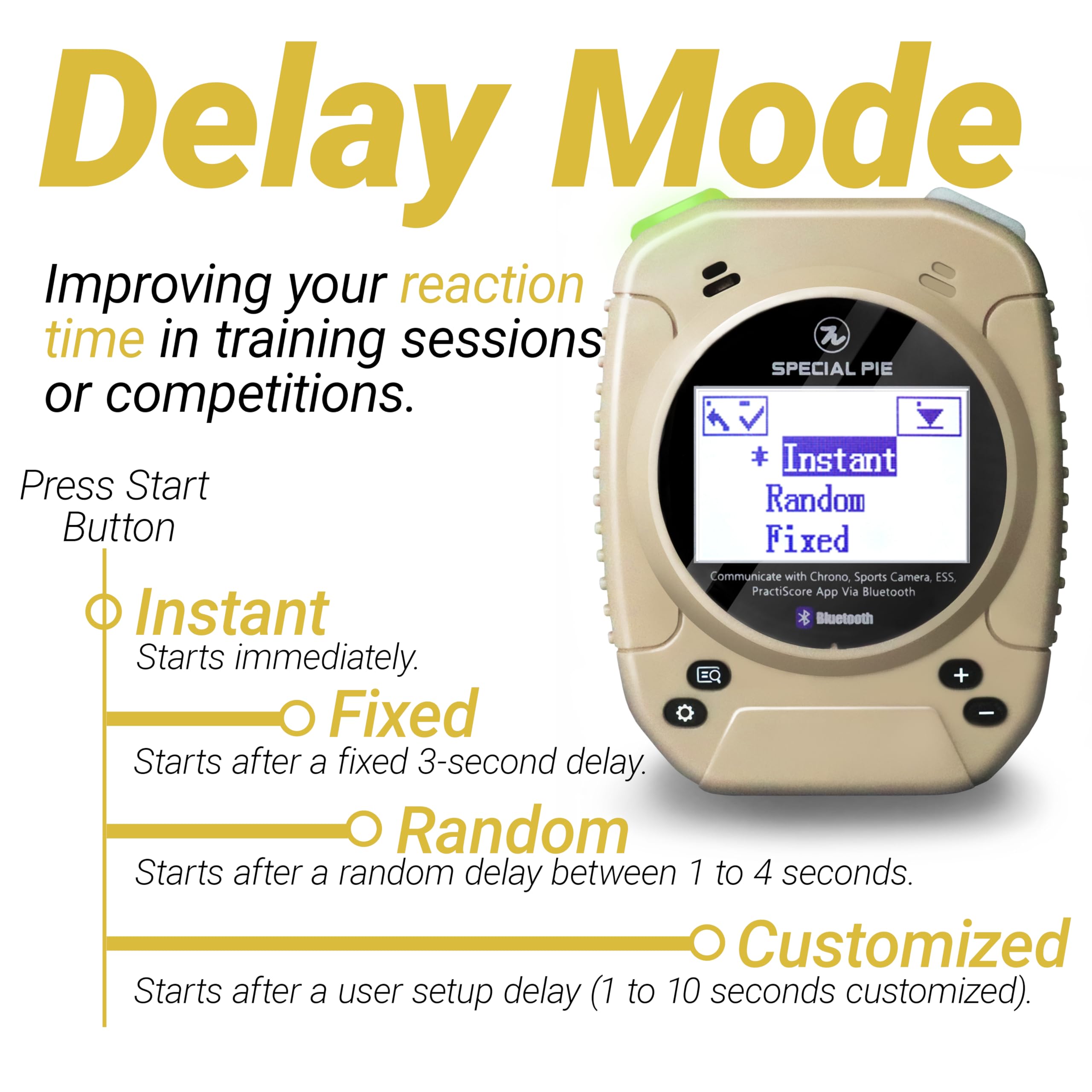 ✅ Tailored Personal Training Modes -This shooting timer is equipped with PAR mode with adjustable duration (0.5-120s) and up to 10 repetitions, which helps you train efficiently without assistance. Four start delay options include instant, fixed, random and customized, which improve your draw speed and follow-up shot times.