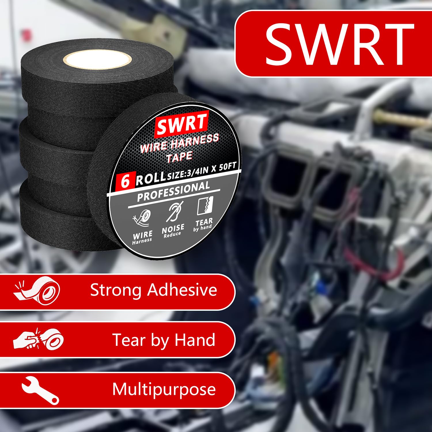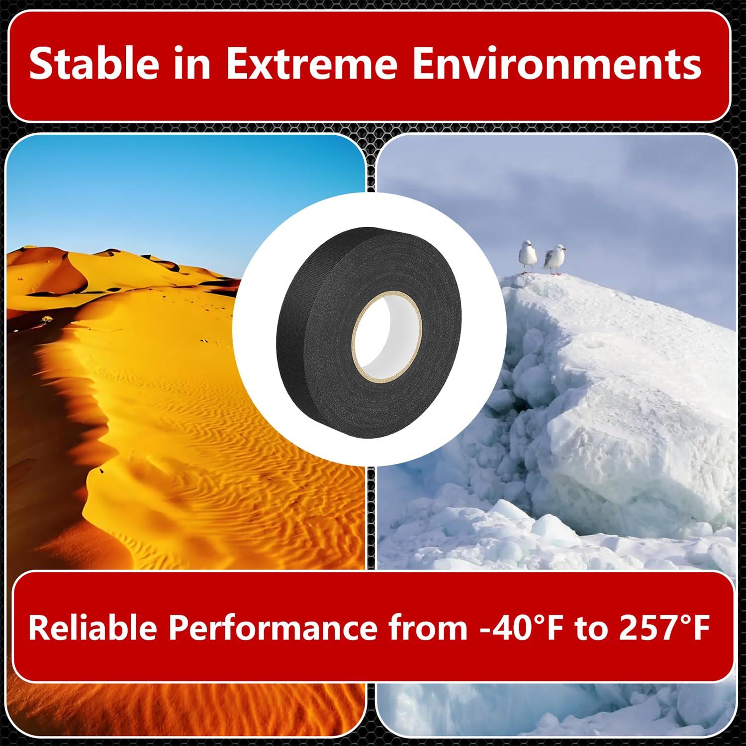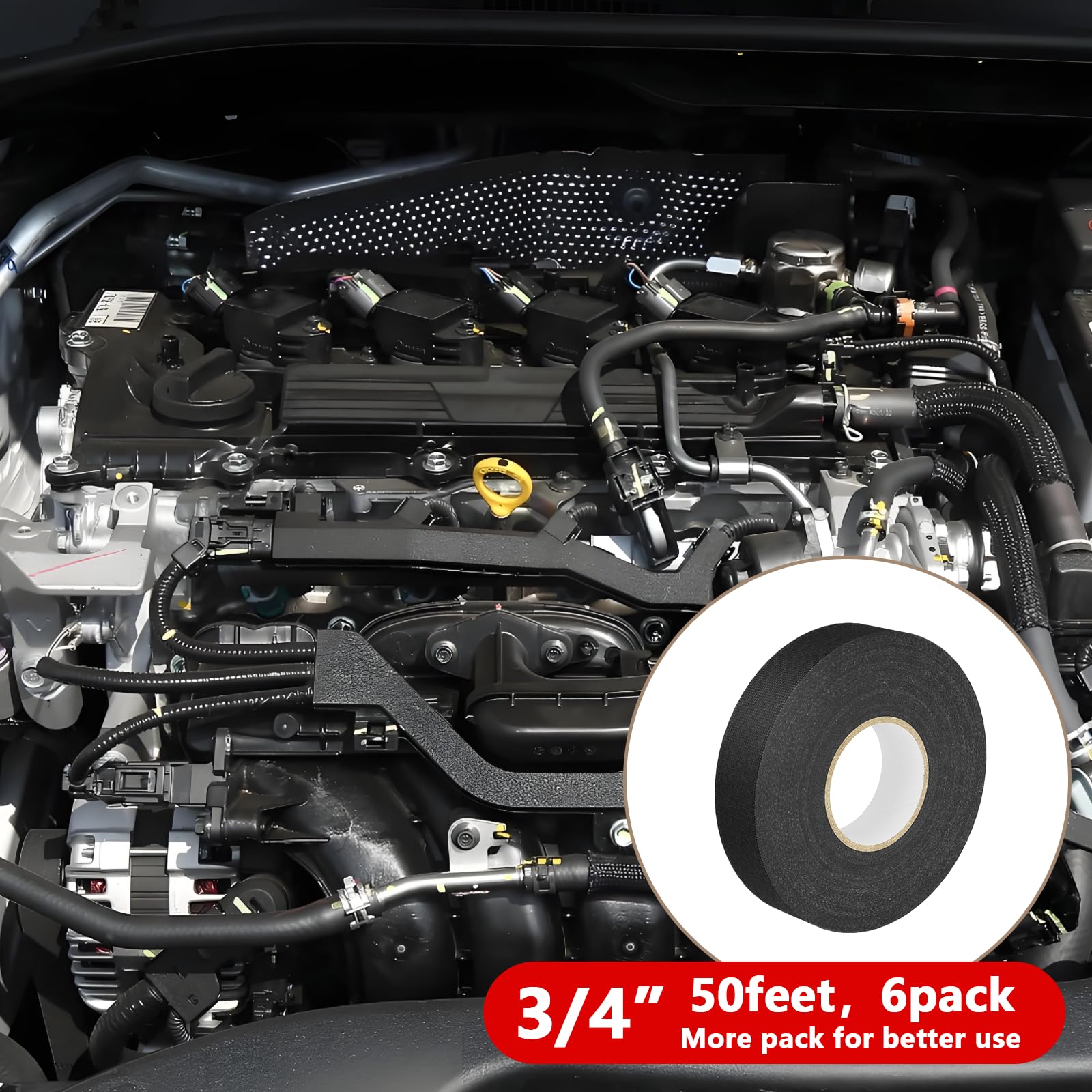 【High Temperature Resistance】: Designed to withstand high temperatures (-40°F to 257°F), this wire harness tape is the perfect solution for automotive wiring, including engine and dashboard wire harnesses. It helps insulate cables and improve the longevity of your wires.