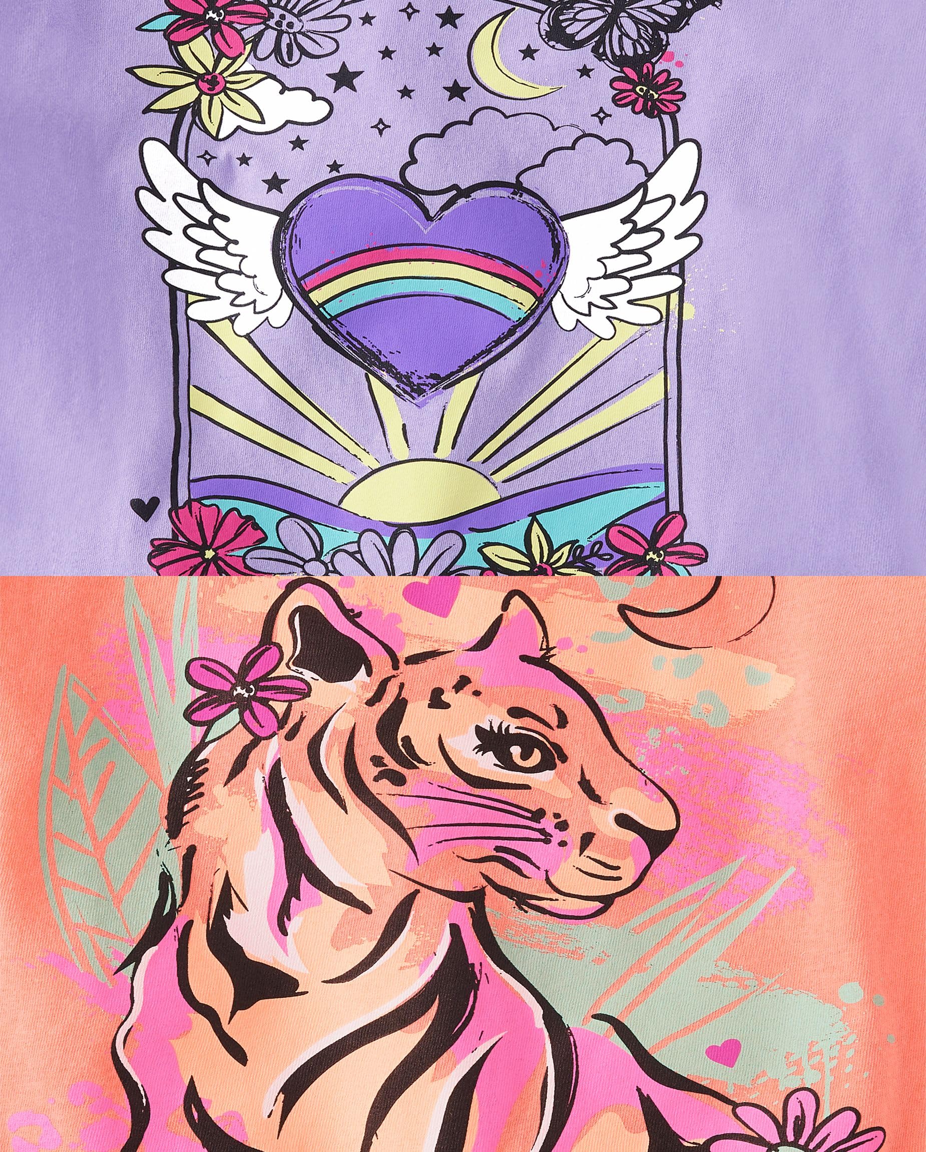 MULTIPACK: 1 turtle graphic design, 1 heart sky graphic design, 1 'Dream' with butterflies graphic design, 1 'Love' with icons graphic design, 1 tiger graphic design