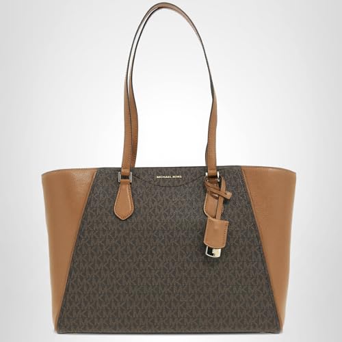 The Taryn tote is a polished staple for workdays, weekends, and every moment in between. Crafted from our Signature logo-print canvas with leather trim, this structured bag features trapeze stitching and a detachable lock charm. It unzips to reveal a spacious interior, complete with side pockets and a center compartment for your tablet or valuables.
