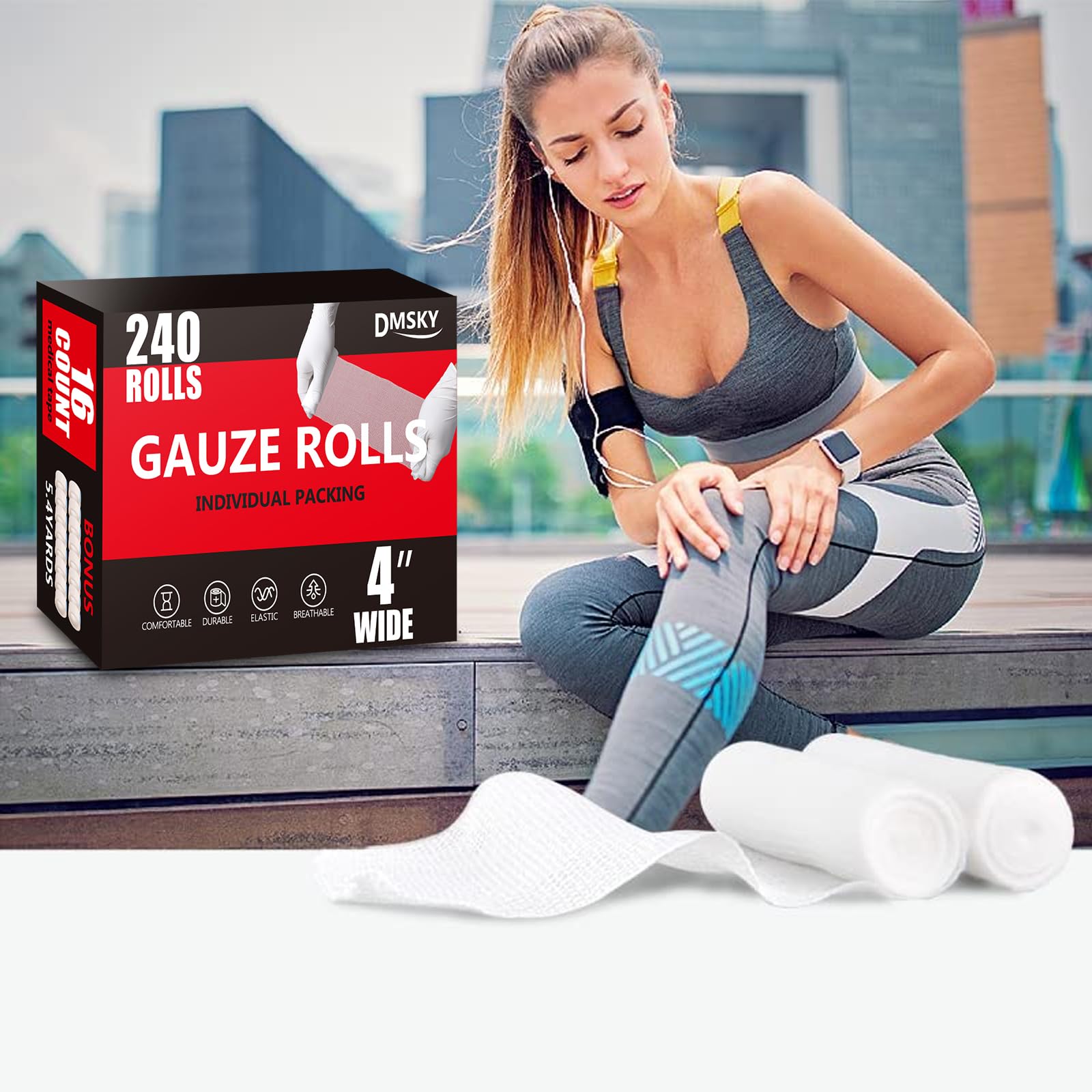 Great Value : Our stretch gauze wrap rolls are economical, super absorbent and latex free. Each package contains 240 medical gauze rolls 4 inches wide and 16 medical tapes, which allow you to keep some roller gauze in your home’s or car’s first-aid kit and be prepared for all of life’s surprises