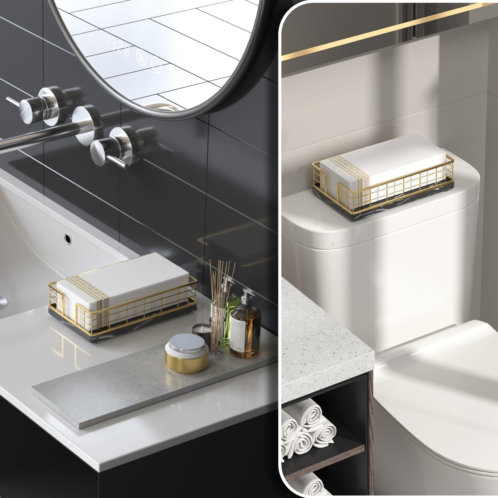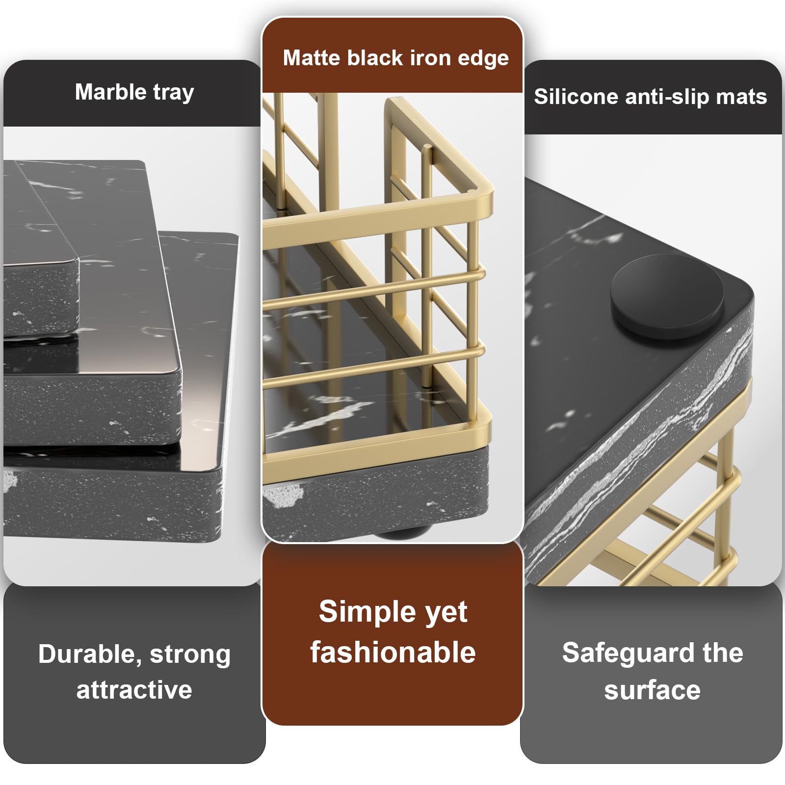 Cost-effective: No assembly required, easy to clean. The tray crafted from iron and marble is simple and attractive. The solid bottom ensures items won't fall. With silicone non-slip pads, it provides both anti-slip functionality and better protection for surfaces