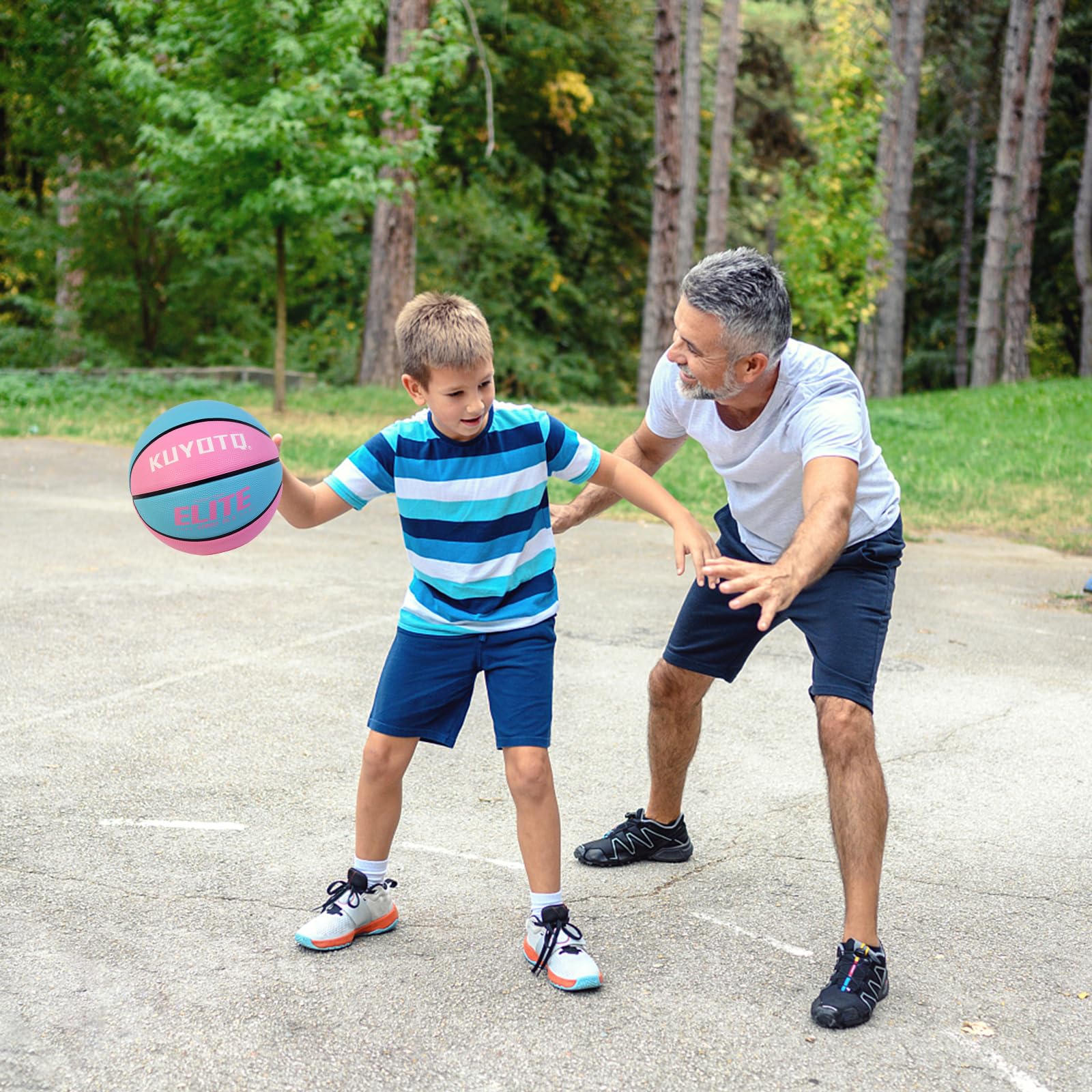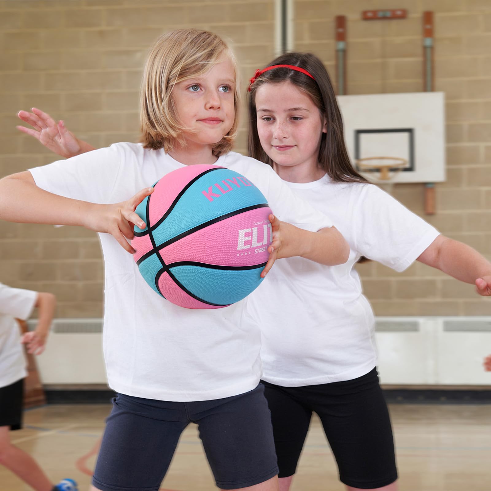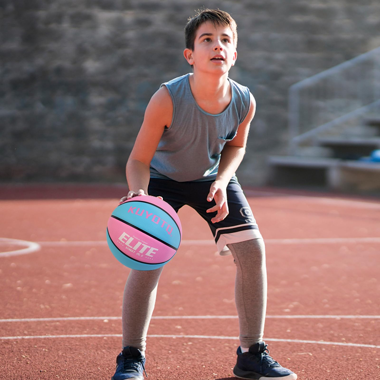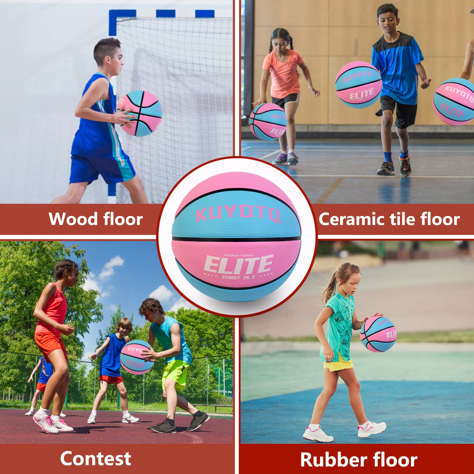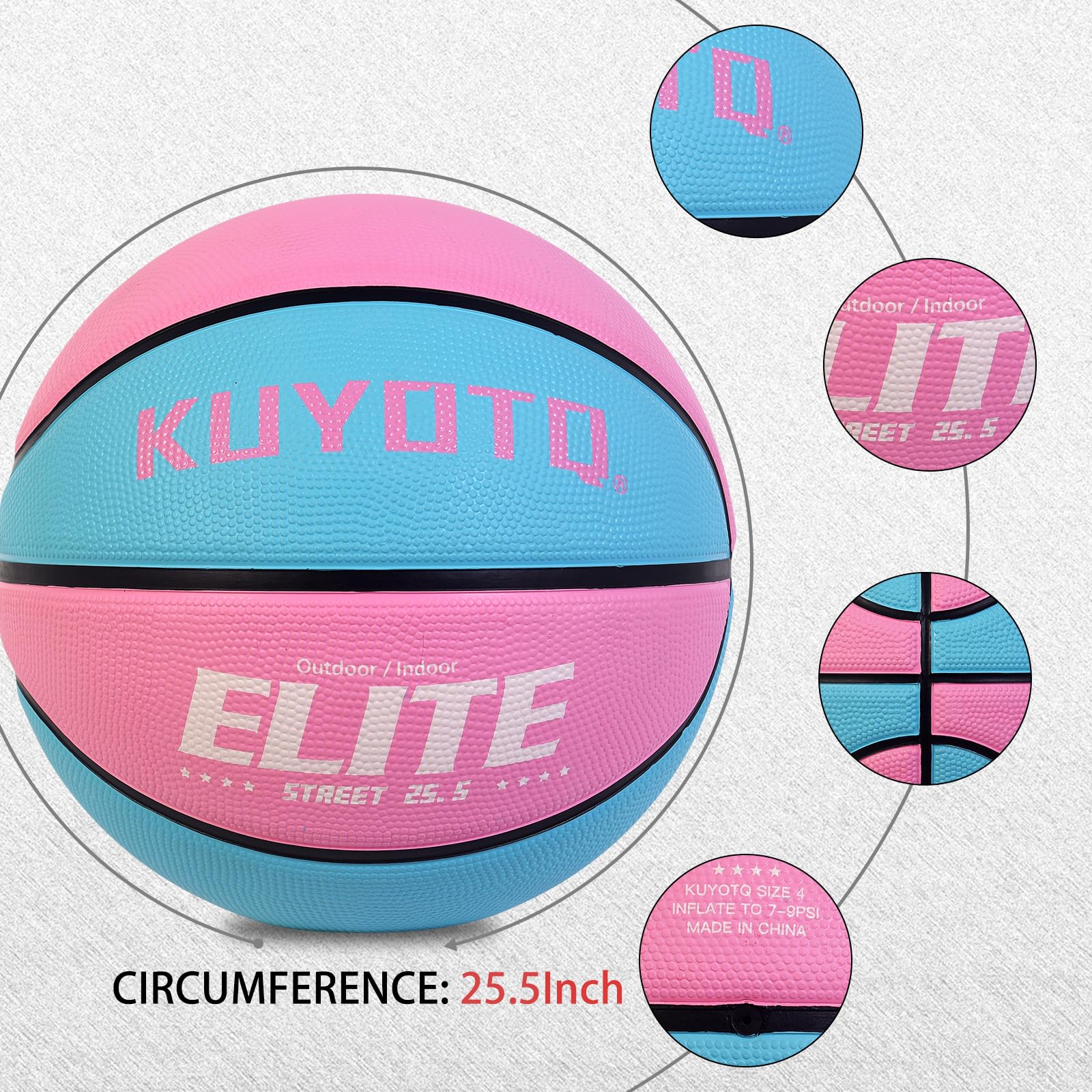 🏀 IDEAL GIFT CHOICE - KUYOTQ ELITE pink blue basketball is made of thick and soft rubber skin,perfect for everyday basketball training or games for girls and boys ages 4-8. Perfect as a gift for girls on birthdays, Christmas and other festive occasions.