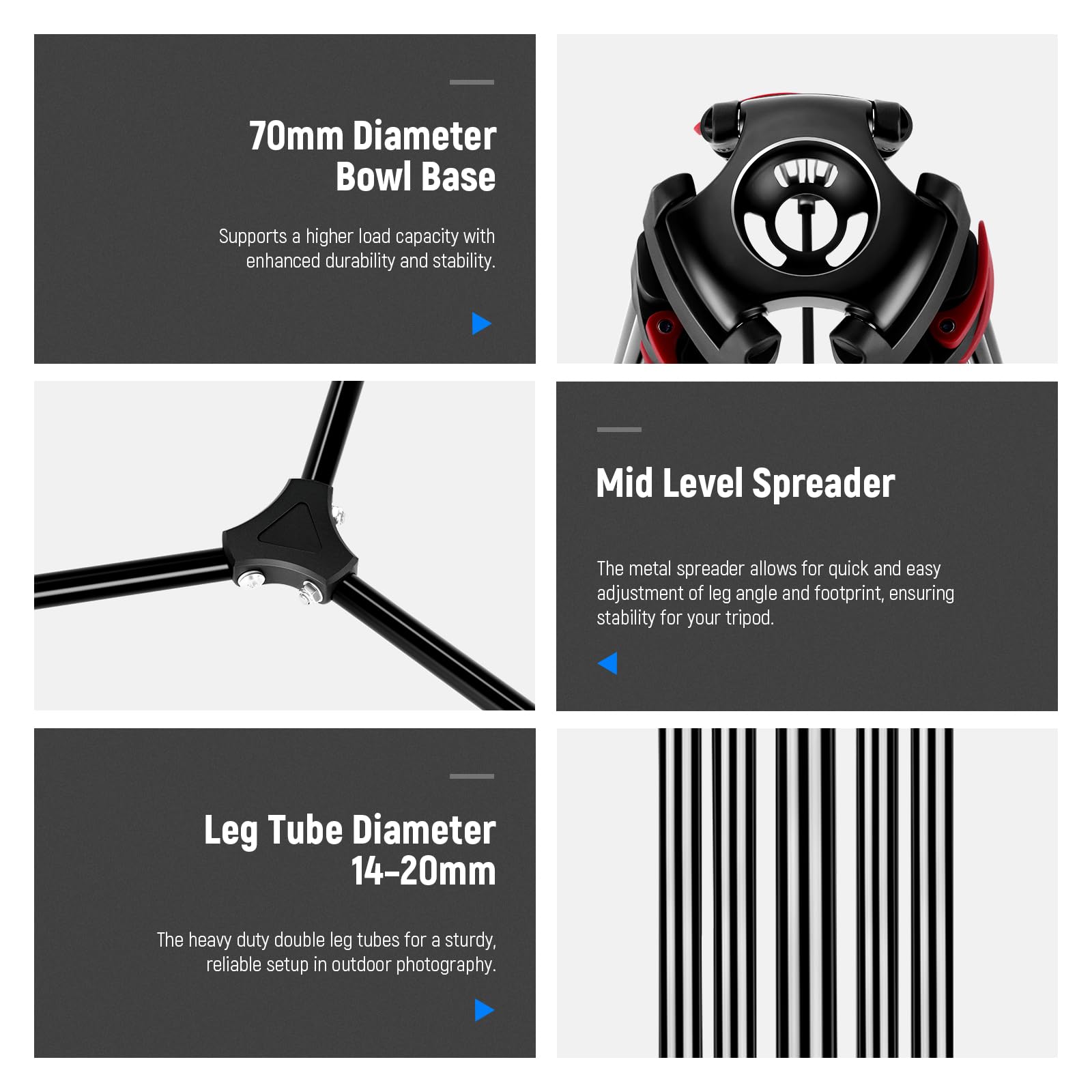 【Sturdy Aluminum Alloy Tripod】 This aluminum alloy double tube tripod is sturdy for different shooting environments. The 70mm bowl base at the bottom of the tripod head can be adjusted to keep it stable on most surfaces, meeting the needs of outdoor travel shooting. Also includes a cleaning cloth to keep the tri pod always ready for your photography or videography