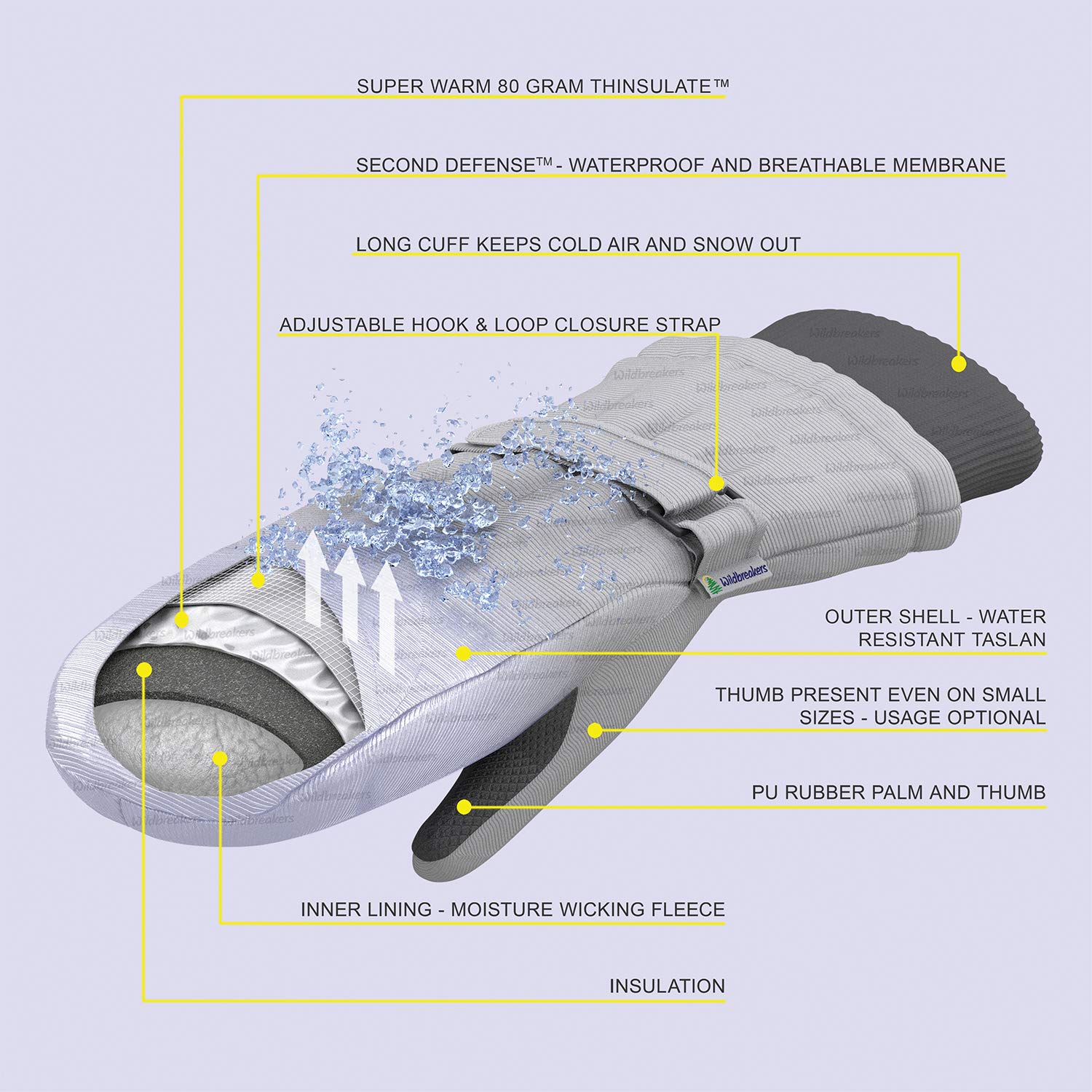 COLD WEATHER READY Snow's here! You need the right kids gloves & kids mittens to keep those little hands warm! You've found the best ski gloves and snow gloves for the coldest days right here! Wildbreakers by Zelda Matilda are the #1 warmest winter gloves & toddler mittens. Take on whatever winter sport you choose with these snow gloves for boy & girl! Ski gloves for skiing, toddler gloves for snowboarding, & toddler mittens for snowball fights! These waterproof mittens cover it all play!