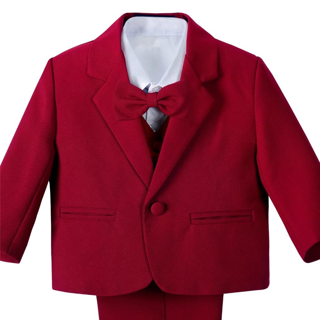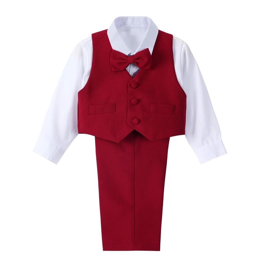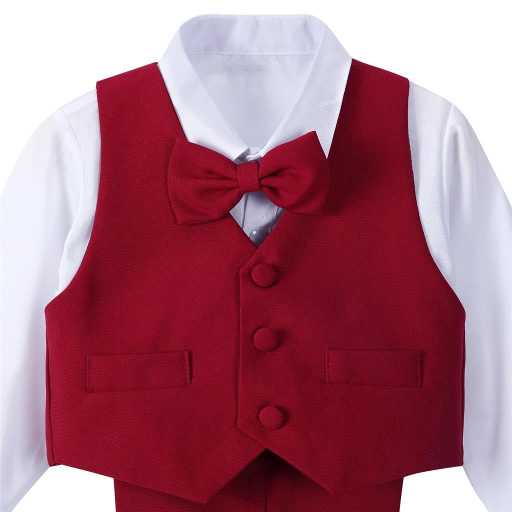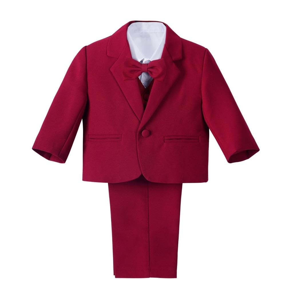 [5 Pieces Little Boys Tuxedo Suit Set] This smart 5-piece gentleman suit set formal outfit includes blazer jacket, white dress shirt, adjustable bow tie, vest and pants. Made of luxurious polyester and cotton fabric. Breathable and comfortable.[Colors] Black, White, Ivory, Light Gray, Silver Gray, Royal Blue, Khaki Beige, Dark Navy Blue, Charcoal Gray, Burgundy Red, Iron Gray. (NOTE: Product color may slightly vary due to the lighting of photo shooting.)