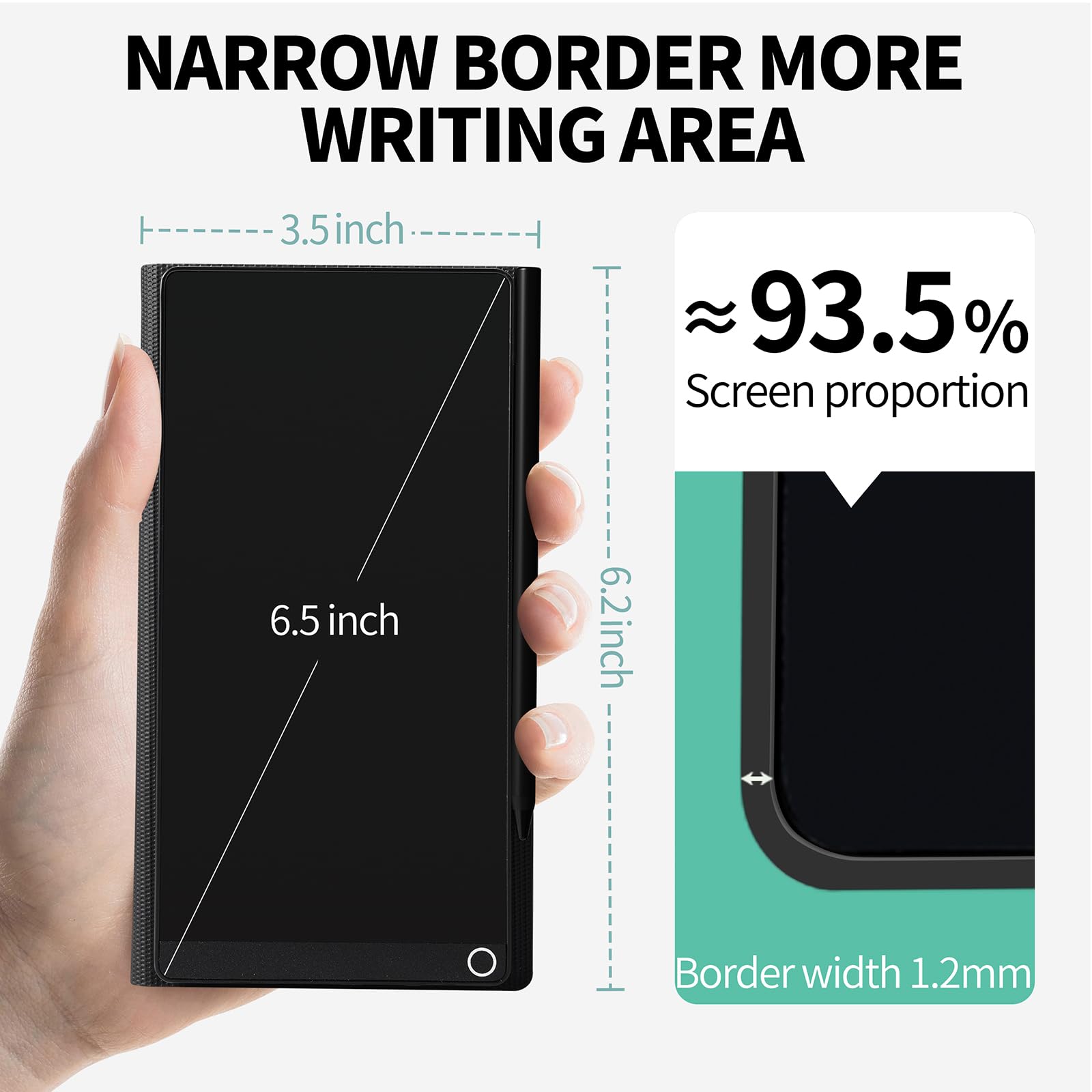 High-quality LCD Writing Tablet: The 6.5-inch writing tablet is equipped with leather case to effectively safeguard the recorded information and prevent screen scratches; The writing screen is 93.5% of the screen. More comfortable to record, communicate, study, work or play games; Measuring just 0.4 inches thin and weighing only 0.2 pounds, it can effortlessly fit into school bags, handbags or travel bags