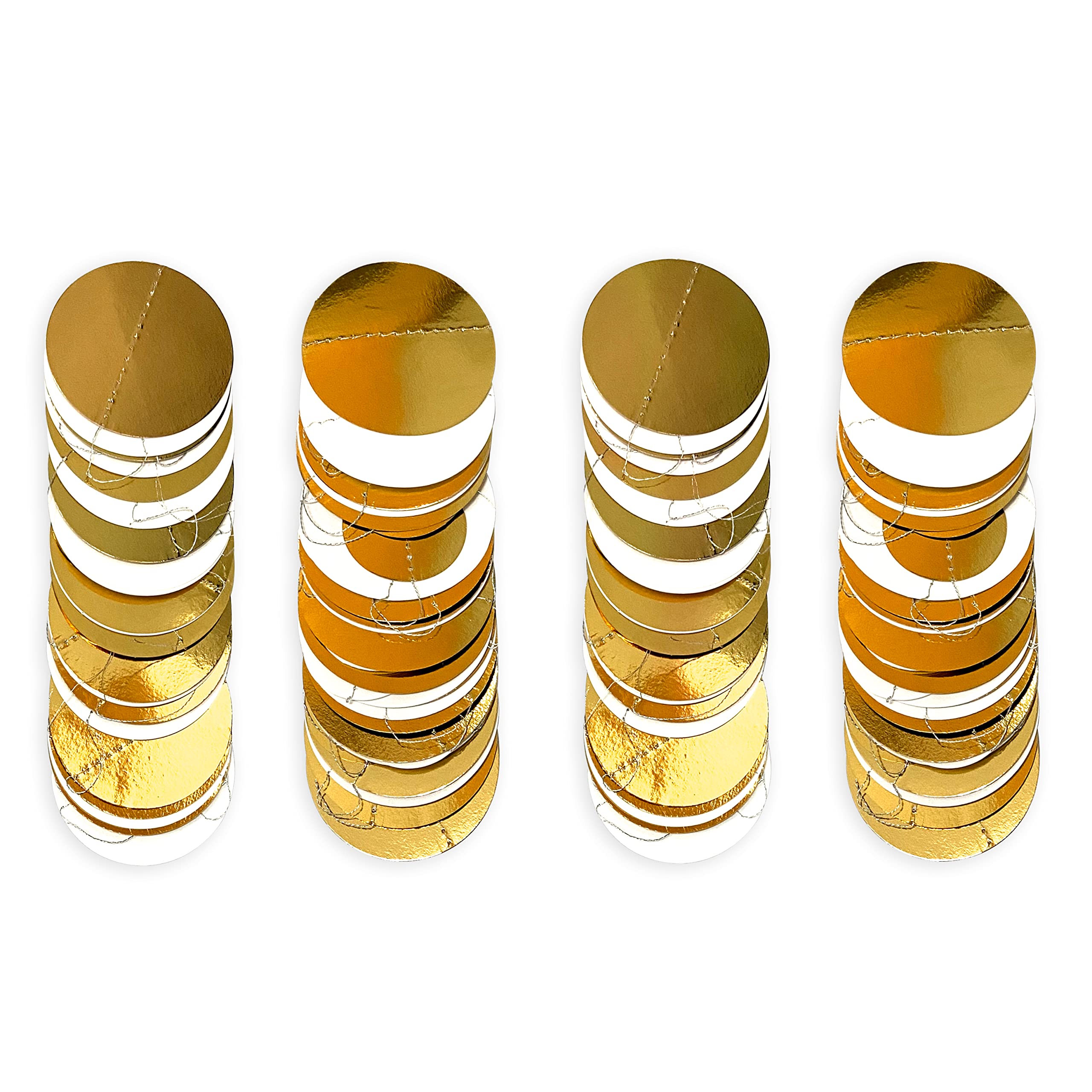 🟡PACKAGE CONTAINS- 4 set of gold and white circle dot party garland banner,Each string is 11.5 feet/3.5 meters, Total is 14 meters/46 feet.