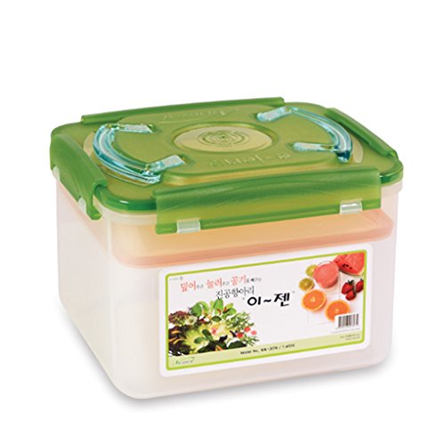 E-Jen containers are light, simple, and very easy to use and operate unlike heavy crock jars. Perfect for any kind of pickling and fermenting from Kimchi to Sauerkraut. Also E-Jen containers can be used to store just about anything and everything that fits inside. E-Jen storage container comes with an adjustable pressing plate that acts as an inner vacuum. Fermentation allows food to retain more vitamins and minerals than other types of preserving. The pressing plate keeps the kimchi/pickles in an airtight space promoting an anaerobic state benefiting the growth of probiotics (lactobacillus). Anaerobic process; requires an oxygen-free environment. If oxygen is present, the wrong organisms flourish instead of the friendly bacteria and/or yeasts we want to cultivate. The design and shape of the containers make it easy to store goods in both the refrigerator and in the pantry without taking too much space. It contains and blocks smells and odors better than most containers due to the double lids and prevents smells/odor from lingering in kitchens or refrigerators. This product is food safe, dishwasher safe, freezer safe, microwave safe, heat and cold resistant. All materials are BPA, DEHP and lead free.