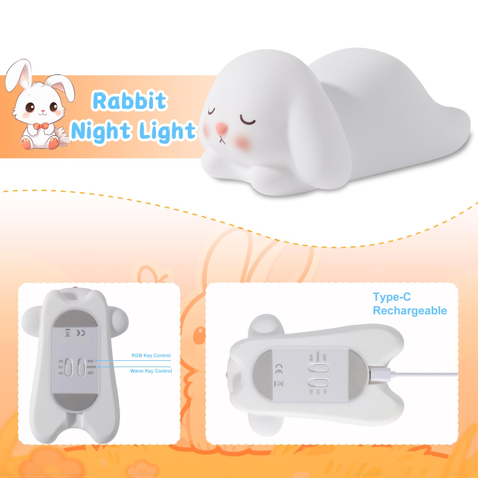 【 Meet various needs 】 Cute animal night lights in your rooms, small lights for breastfeeding or changing diapers at night in your rooms, decorative lights in daycare centers, camping atmosphere lights, and various places that need to touch small night lights. Undoubtedly, this is an excellent gift for family, friends, and you on birthdays and holidays!Not only as a kawaii night light , cute rabbit lamp can also be used for cute gifts/rabbit stuff/gifts for rabbit lovers/rabbit lover gifts!