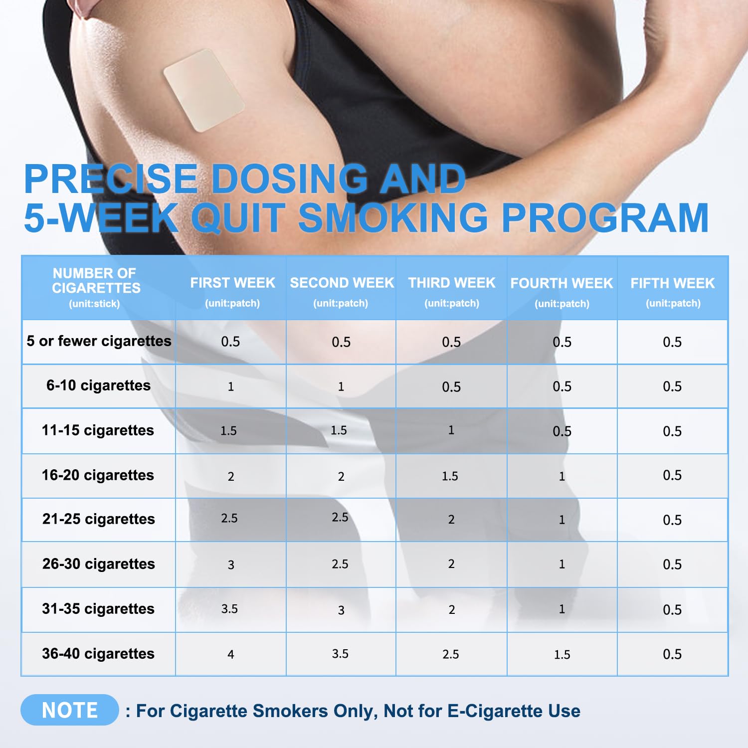 PERSONALIZED QUIT SMOKING PROGRAM:NiEnjoy offers a precise, 5-week quit-smoking plan tailored to your smoking habits, helping you gradually reduce dependence on cigarettes until you’re smoke-free. Using the "Precise Dosing and 5-Week Quit Smoking Program" on the main product image, you can calculate the total number of NiEnjoy Patches needed for five weeks based on your daily smoking routine. For instance, if you smoke 6-10 cigarettes per day, you’ll need 24.5 patches over five weeks, which can be met with 4 boxes of NiEnjoy patches.Additionally, NiEnjoy patches are highly suitable for heavy smokers.