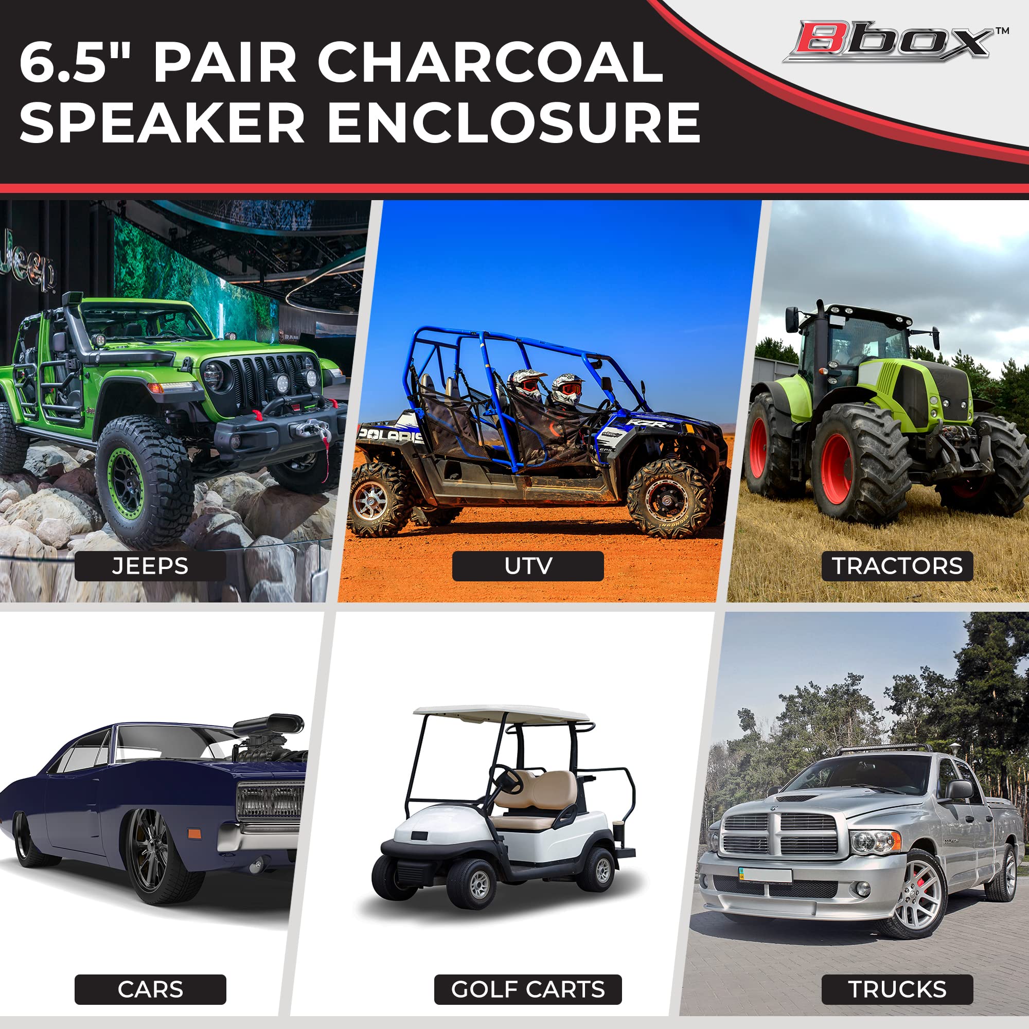 Set of two (2) 6.5 inch Bbox Pro Audio Tuned Speaker Enclosures that reduces rattles and vibrations whilst vastly improving musical sound quality. Plus, they can be used in the home/motorhome, truck, ATV, or car. Easy to set up and coming ready to use, they're ideal if you need a 6.5" speaker box to significantly elevate your music listening experience for years to come.