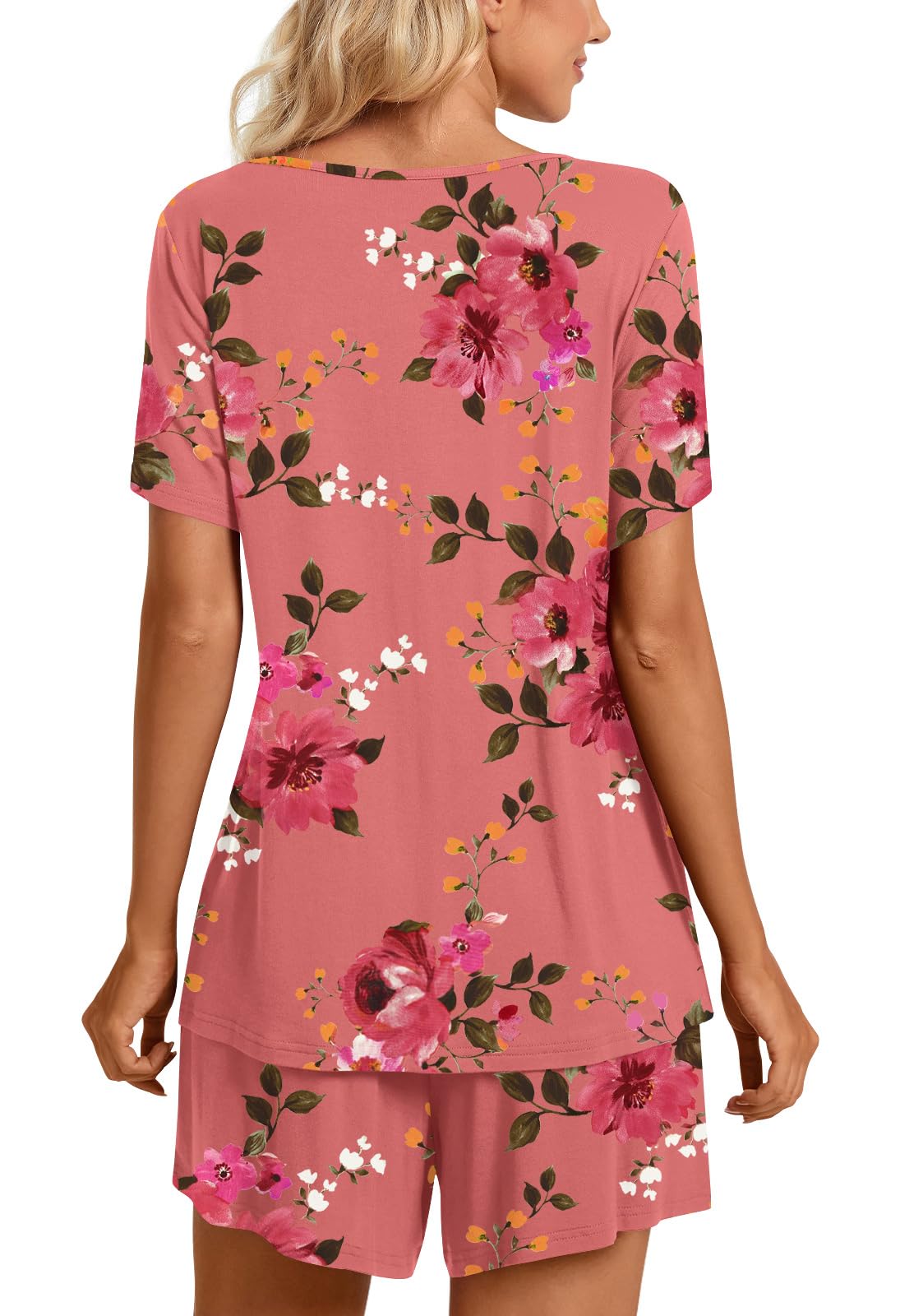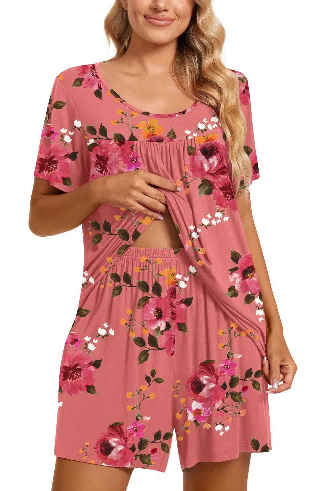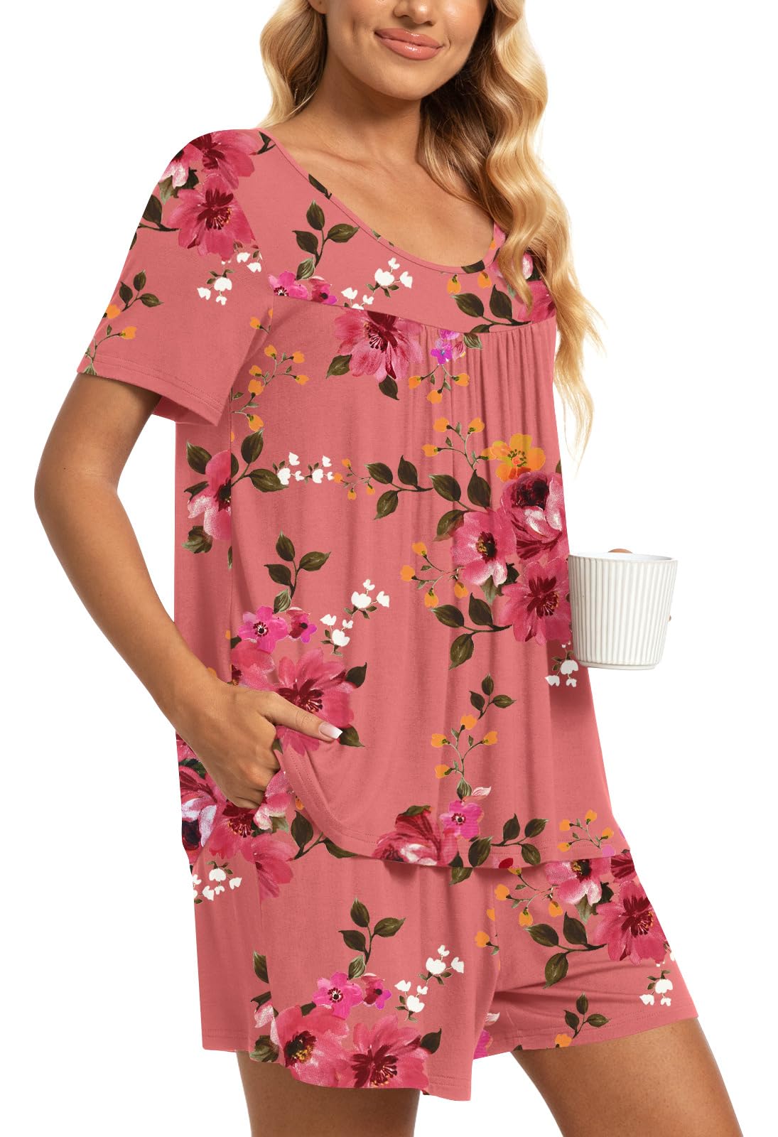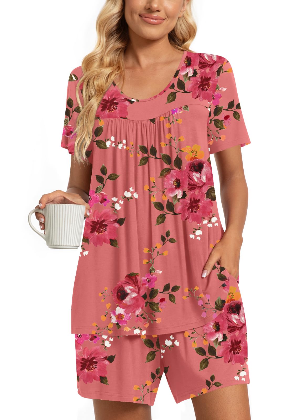 Fashion-Simple Design: Cute two piece outfits, short sleeve tops, soft nightwear, scoop neck and front pleated detailed design. Elastic waistband shorts, casual loose comfy, graceful and easeful