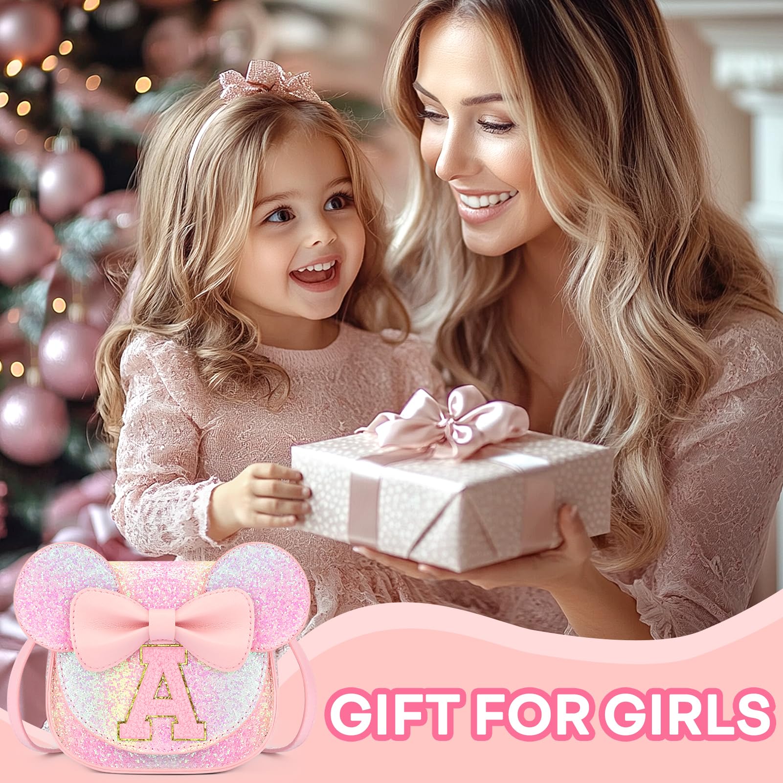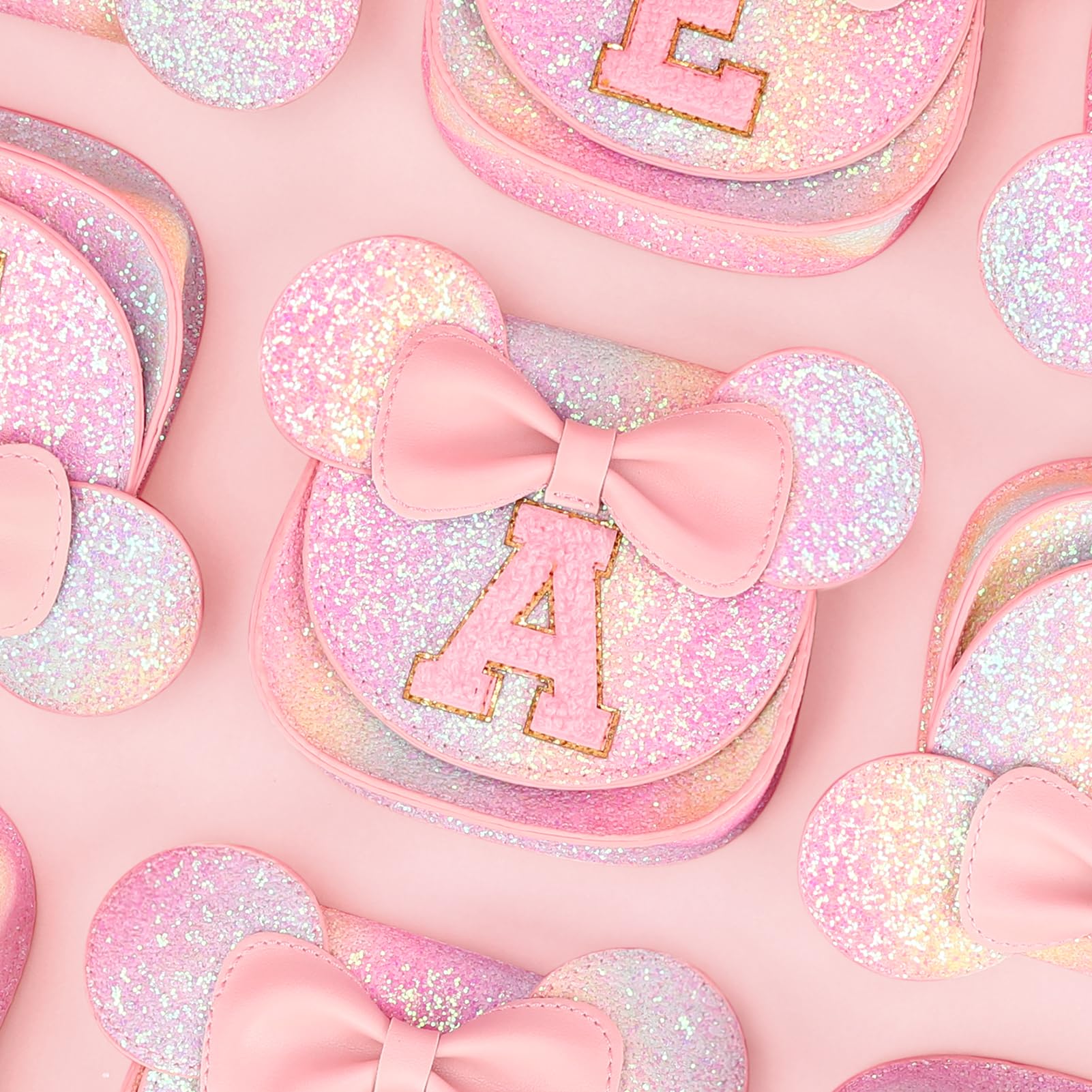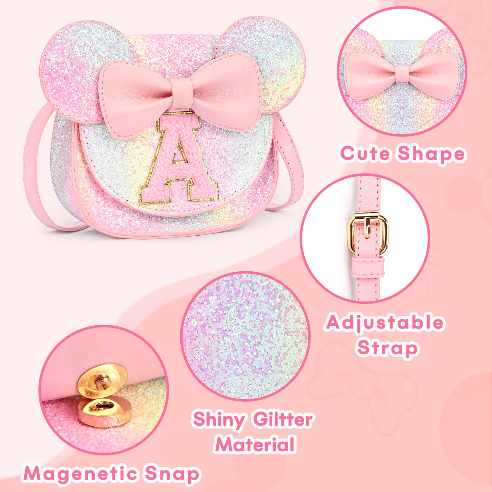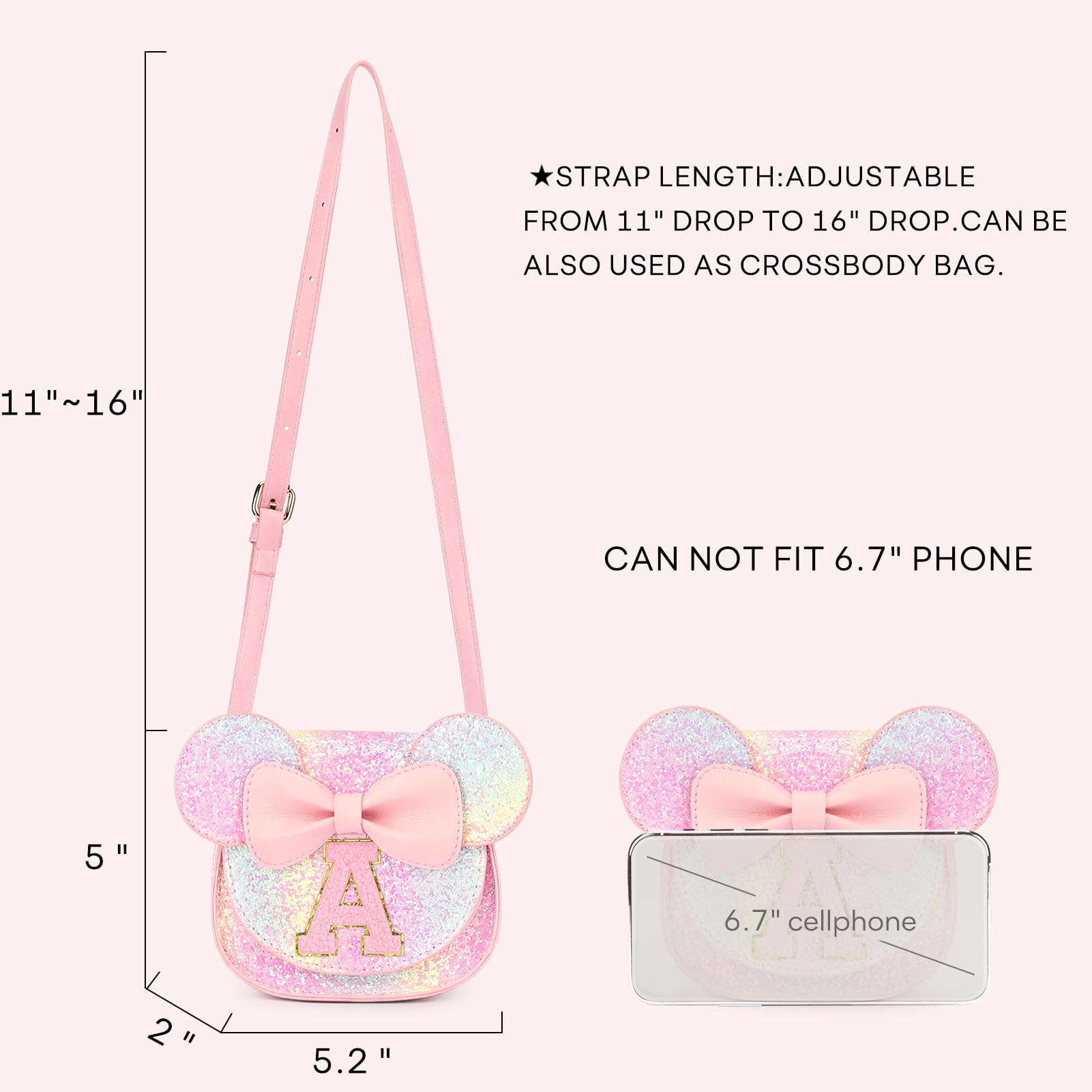 Cute Shape: Patched with a letter,This little girl purse would be a personalized birthday gifts for 6 year old girls or under. Kids would love its mini mouse ears and bow