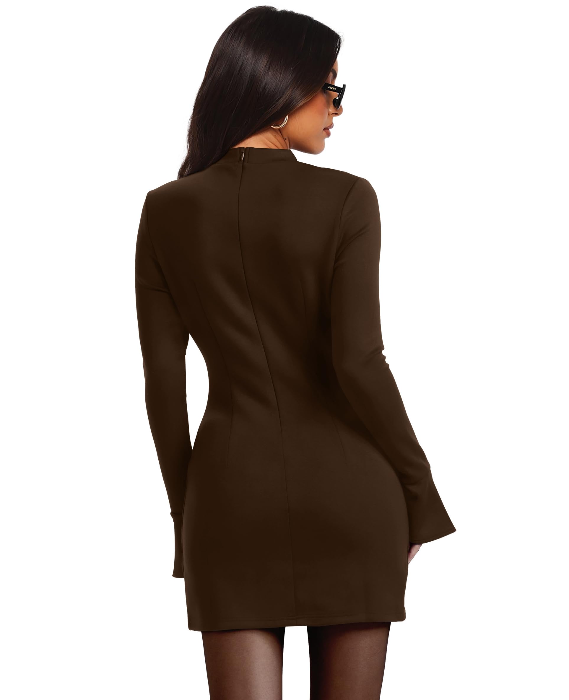 【Slim Fit】A beautifully structured, stretchy dress accentuating your curves. mini length, solid color long sleeve bodycon dress, makes you more sexy and beautiful