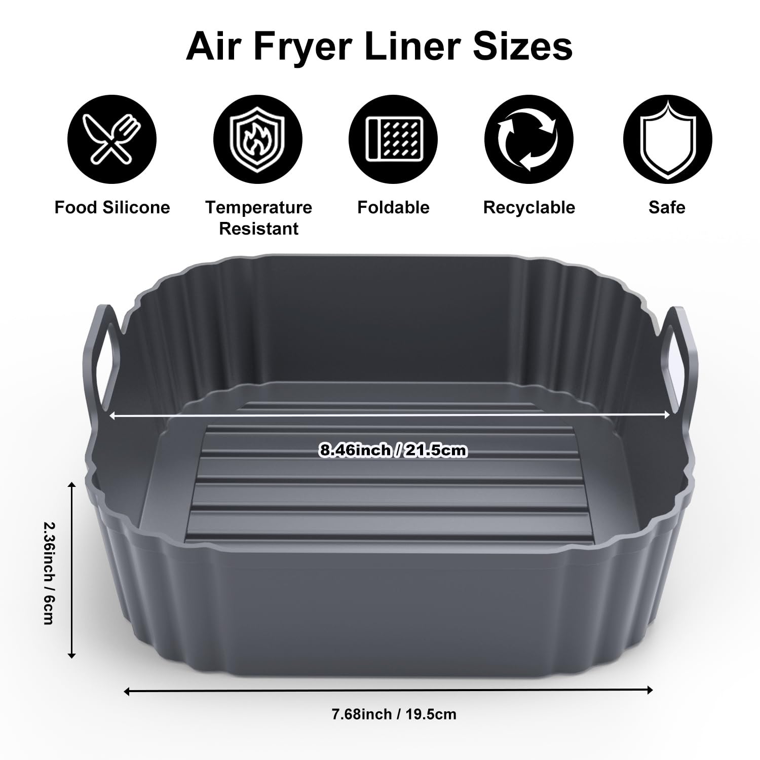Unique Design: The square Air Fryer Silicone Liners feature thick, sturdy walls that provide excellent support and are resistant to deformation. The raised silicone strips at the bottom help separate food from the oil produced during cooking, reducing fat intake. The raised design also promotes airflow, shortening cooking time and saving energy.
