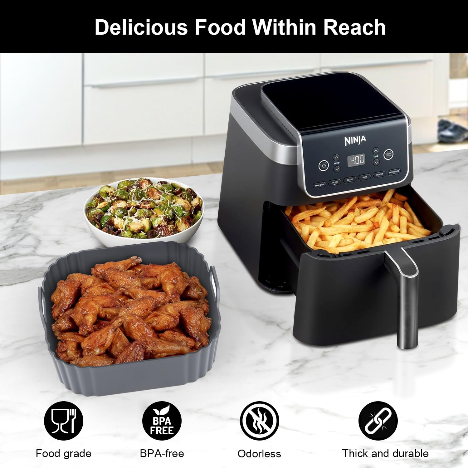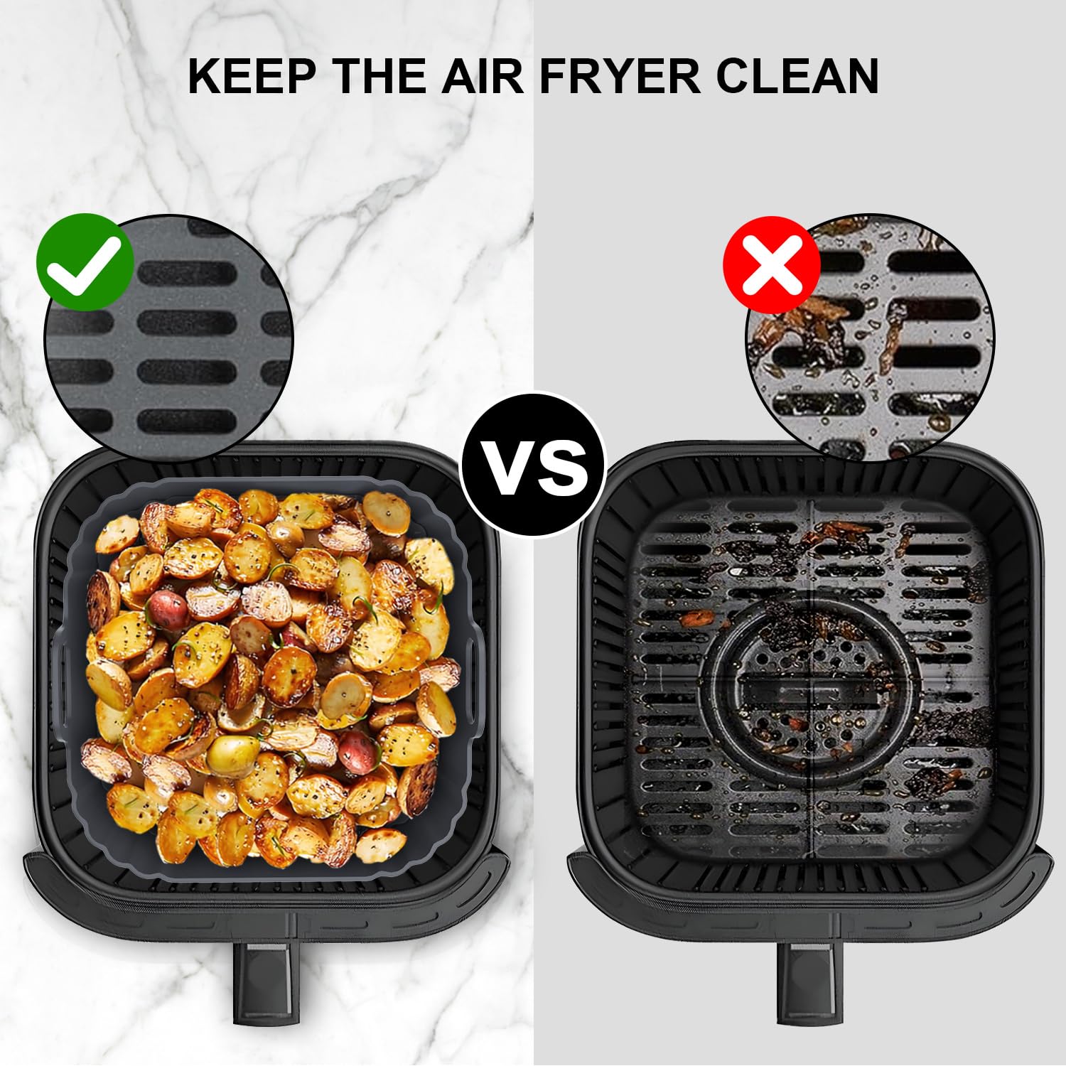 Easy to Clean: Effectively protects the air fryer from food residue and grease buildup, and is fully dishwasher-safe, eliminating the hassle of hand washing. Say goodbye to sticking and burnt residue, making cleaning a breeze.