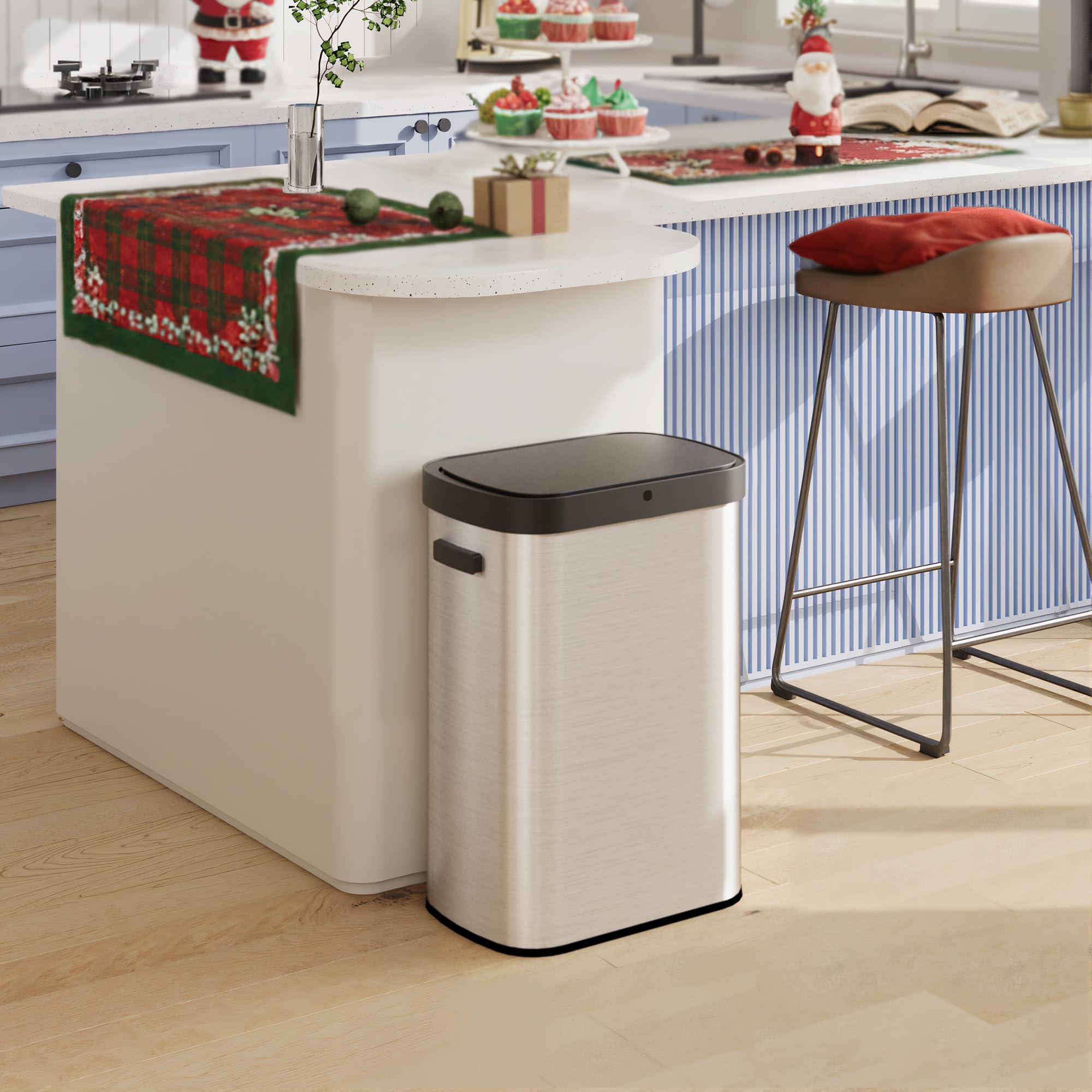 【Durable & Stylish】Crafted with anti-fingerprint stainless steel, this touchless trash can resists smudges while maintaining a sleek, scratch-resistant finish. Durable and visually versatile, it blends effortlessly into any decor.