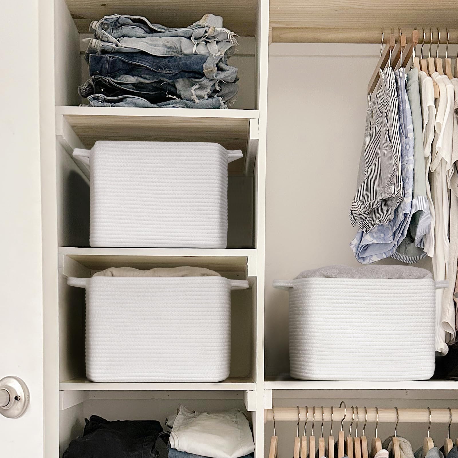 Soft Material. The decorative basket is made of soft cotton rope and is very suitable for home use, especially for toddlers, infants, children, and pets. This basket is suitable for storing items such as toys, diapers, blankets, books, etc
