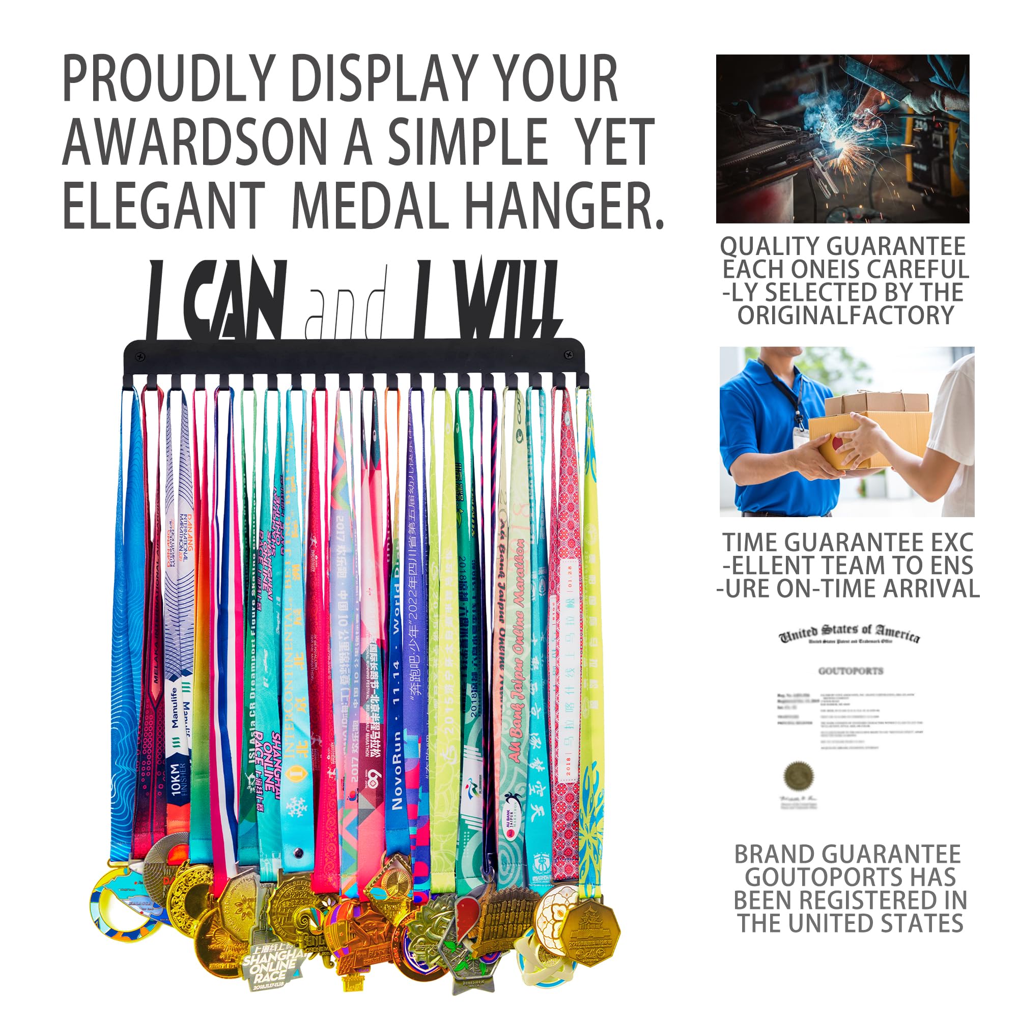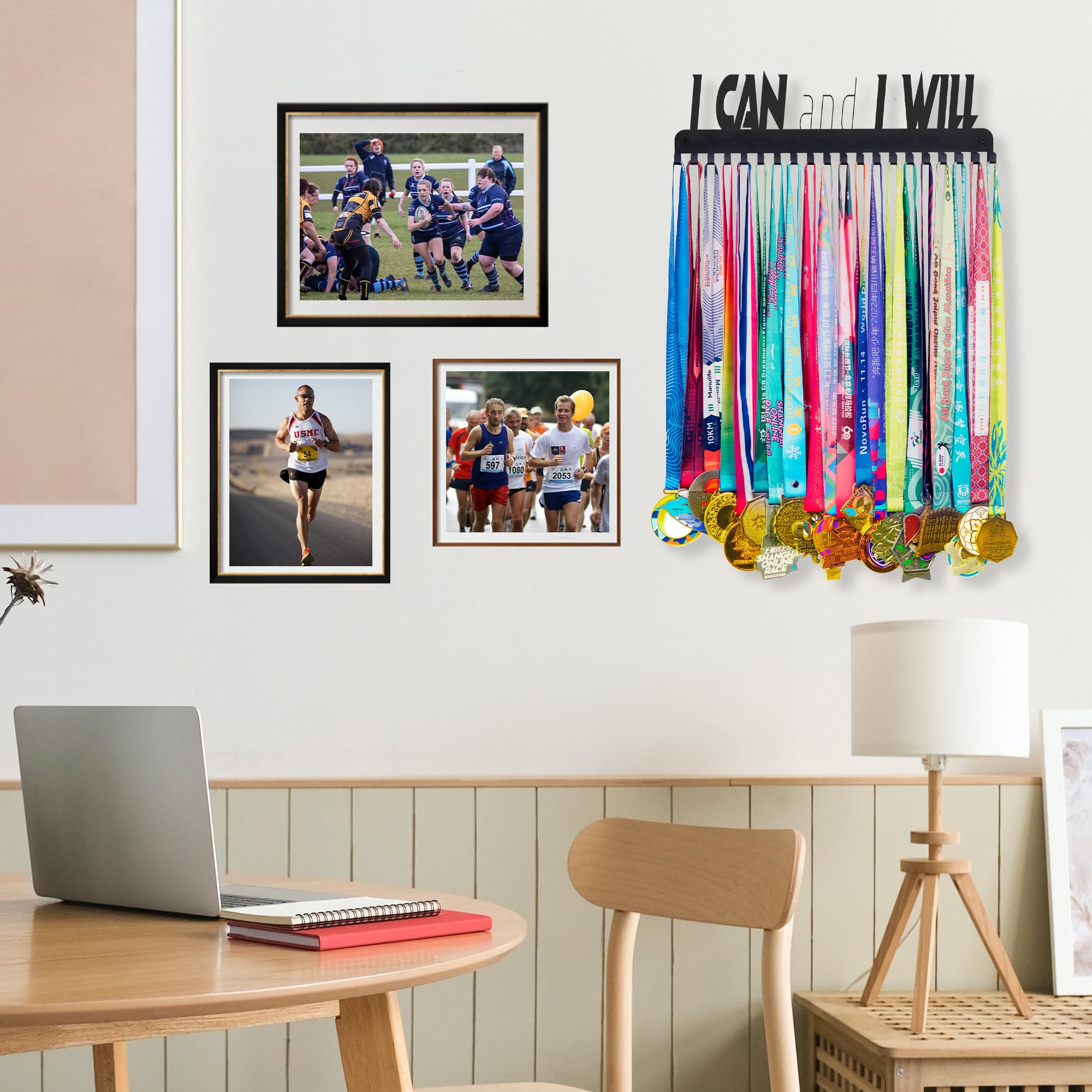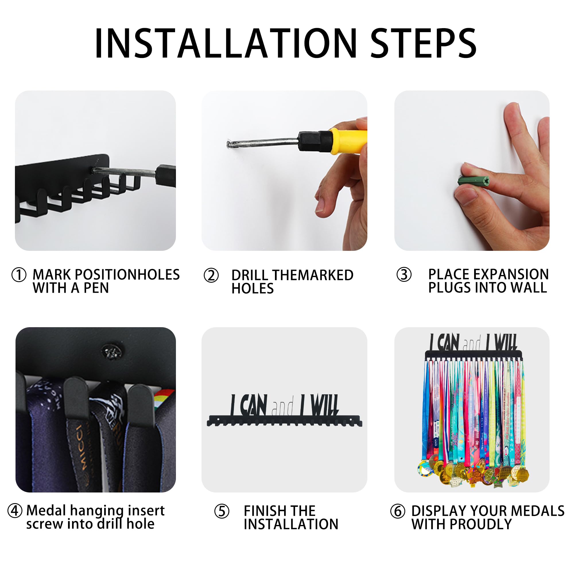 🏆 Multi-Sport Versatility - Holds soccer medals, gymnastics ribbons, marathon bibs, and even towels/keys. Fits 15.8x4 inches of wall space with pre-drilled holes